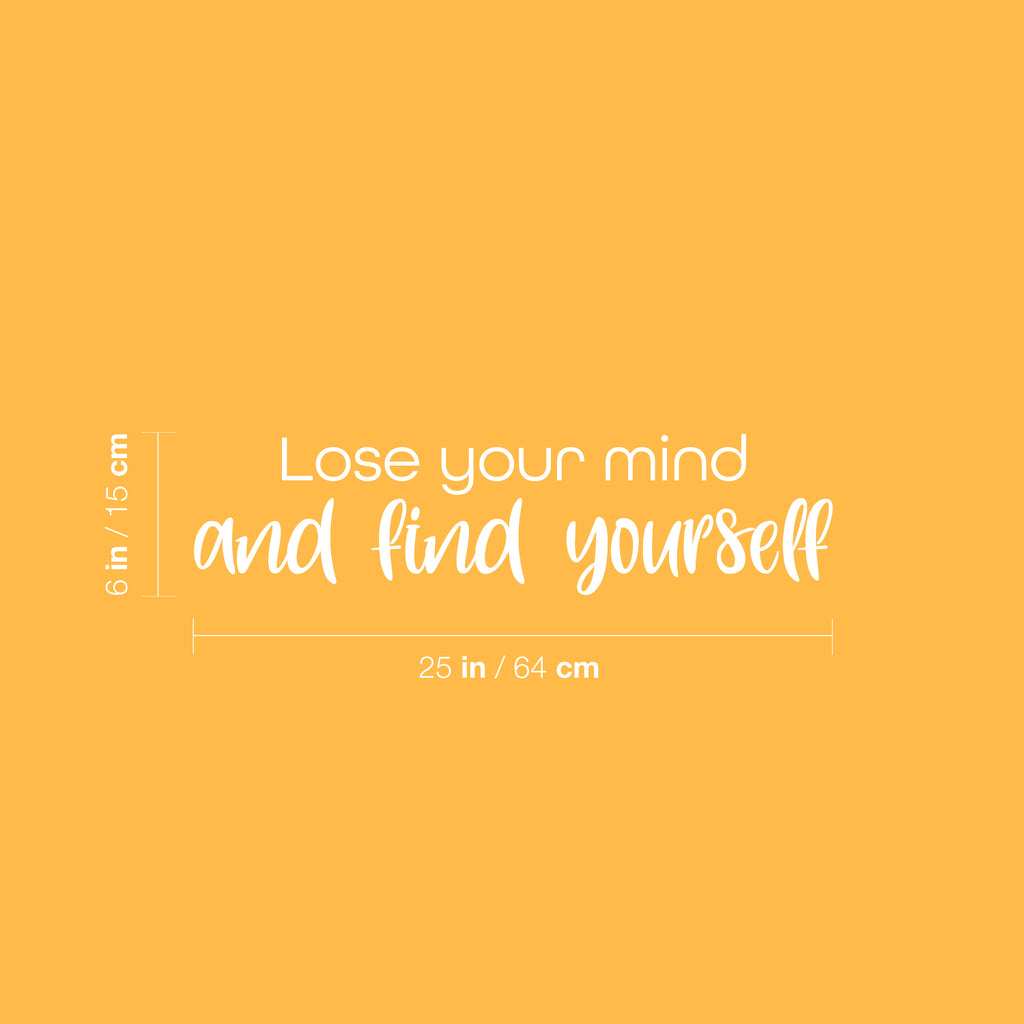 This motivational & optimistic decal quote "Lose Your Mind And Find Yourself"; is the perfect touch for your home. Use it for your living room; playroom; kids room or anywhere you want to bring some extra cute decoration. It's a vinyl sticker that is easy to put on any smooth and dry surface. Our modern designs don't just brighten up the room; but brighten up the day. Using top of the line vinyl across all of our production allows us to be the leaders in quality and design.