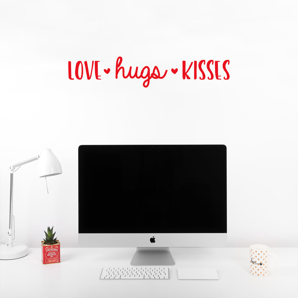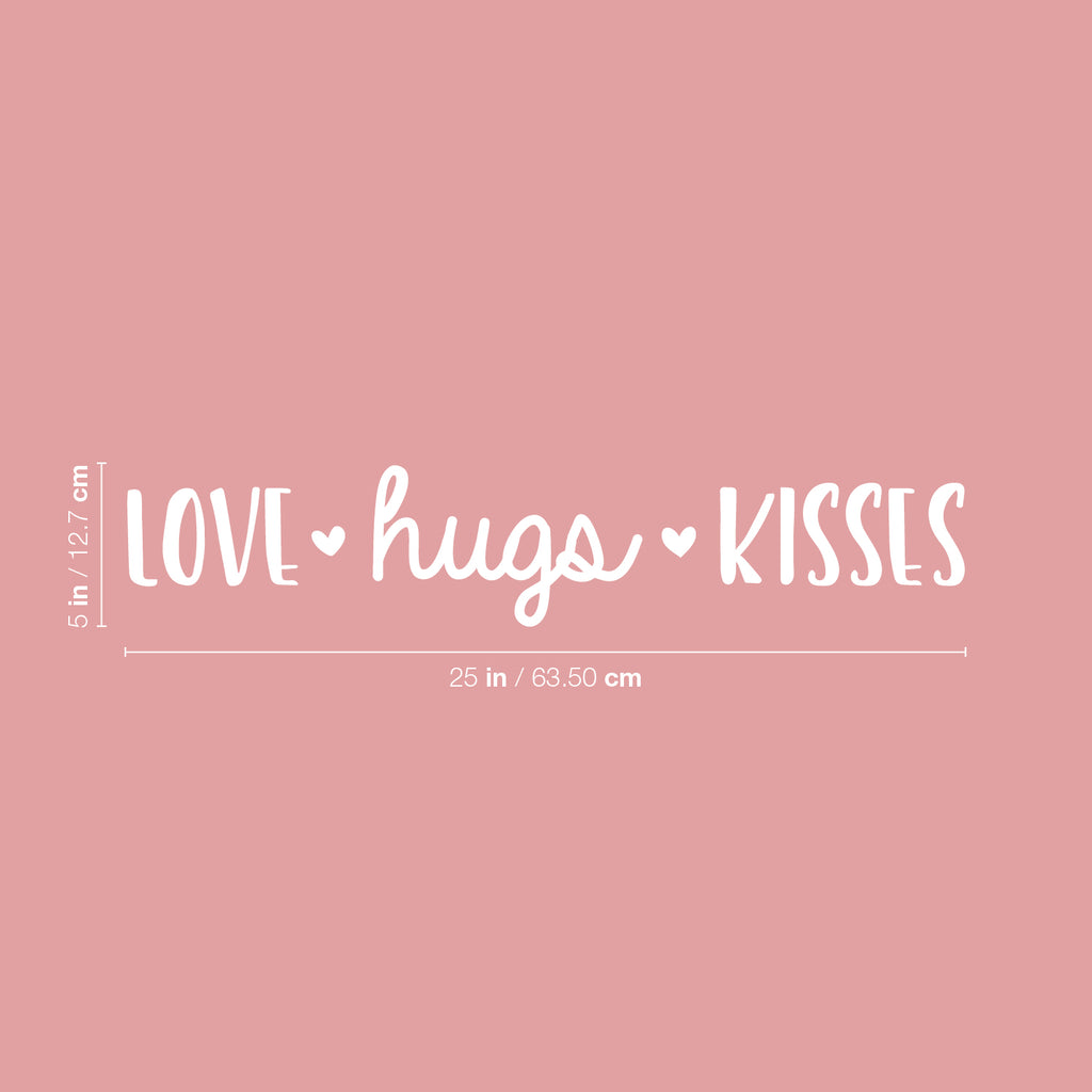 This cute & inspirational decal quote "Love Hugs Kisses"; is the perfect touch for your home or school. Use it for your living room; playroom; kids room or anywhere you want to bring some extra cute decoration. It's a vinyl sticker that is easy to put on any smooth and dry surface. Our modern designs don't just brighten up the room; but brighten up the day. Using top of the line vinyl across all of our production allows us to be the leaders in quality and design.