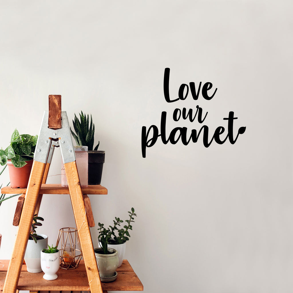 This awesome motivational decal quote "Love Our Planet"; is the perfect touch for your home or school. Use it for your living room; playroom; kids room or anywhere you want to bring some extra cute decoration. It's a vinyl sticker that is easy to put on any smooth and dry surface. Our modern designs don't just brighten up the room; but brighten up the day. Using top of the line vinyl across all of our production allows us to be the leaders in quality and design.