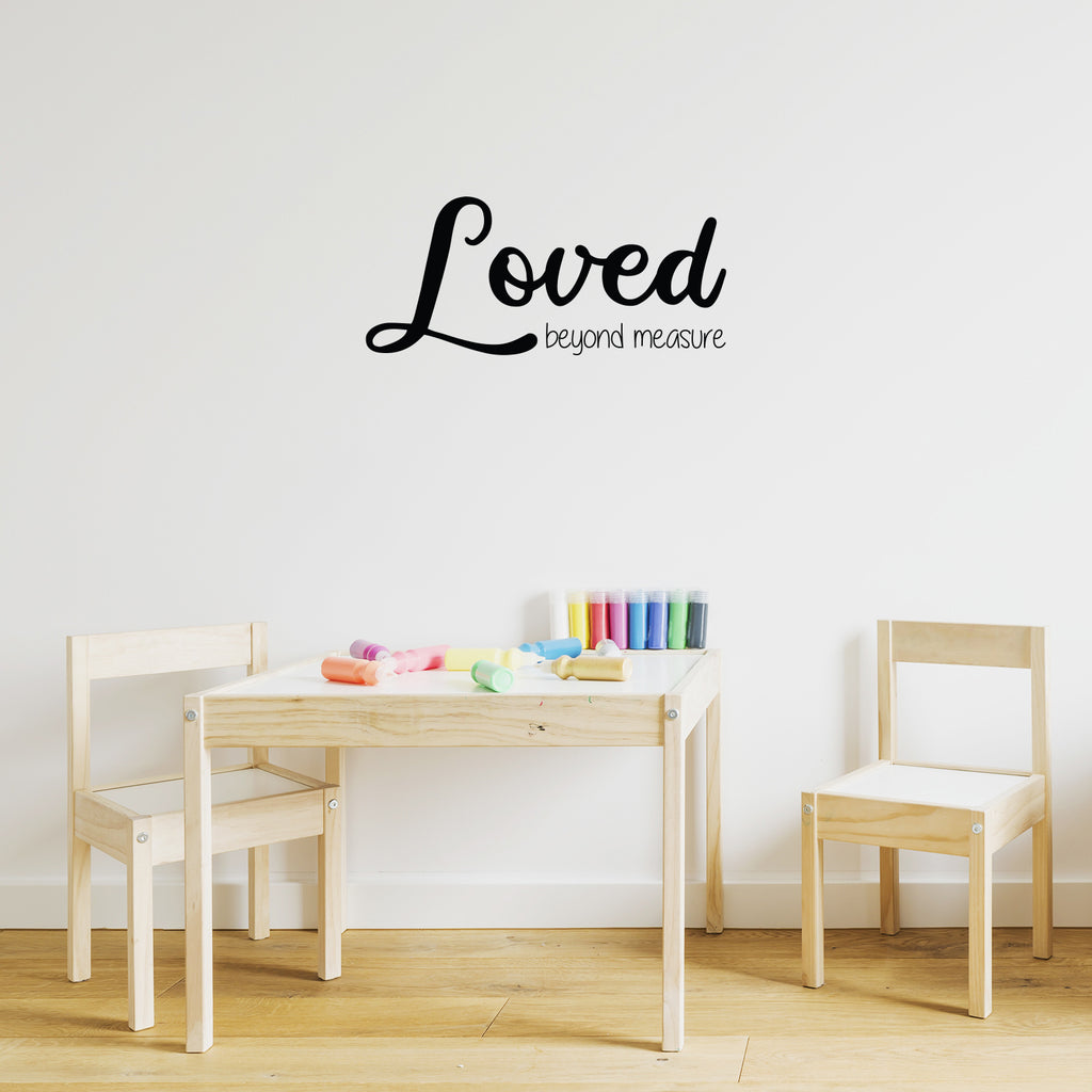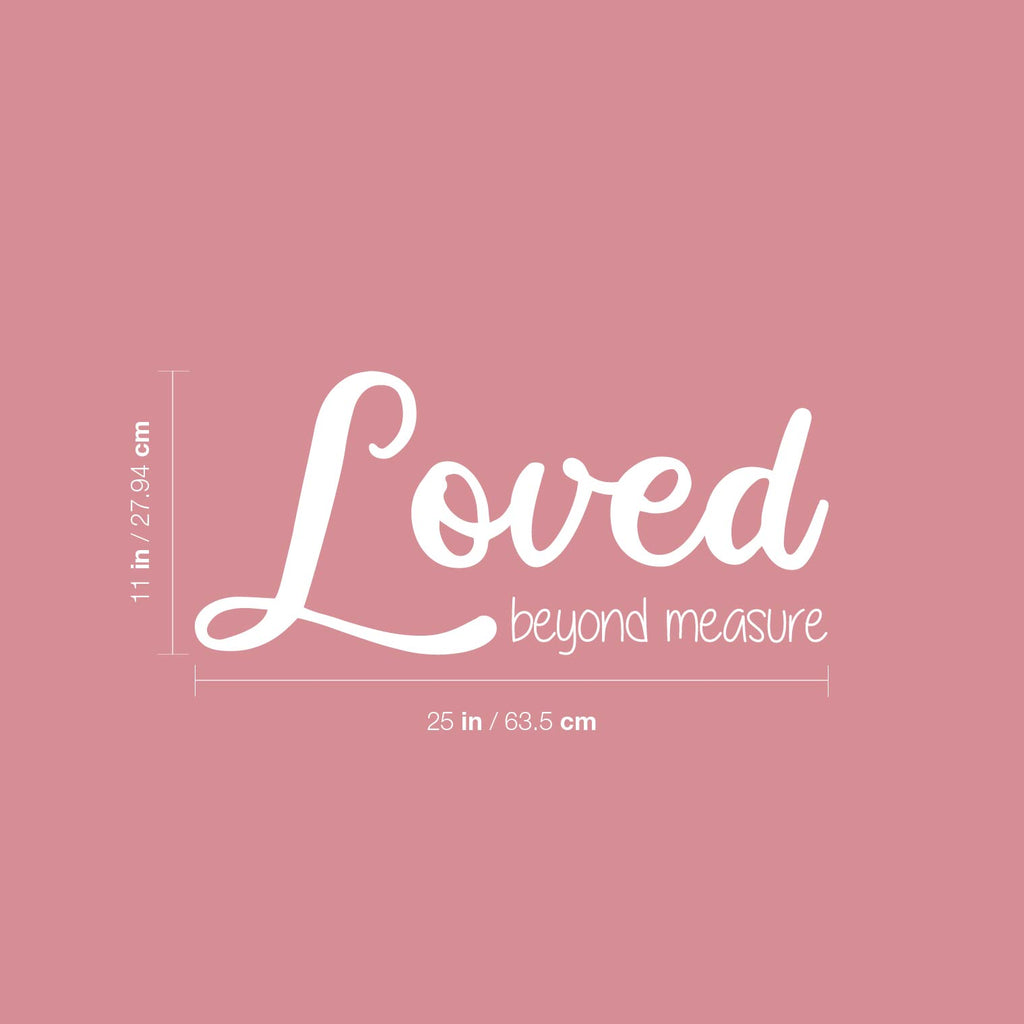 This great decal quote "Loved Beyond Measure"; is the perfect touch for your home. Use it for your makeup area; dorm room or anywhere you want to bring some extra decoration. It's a vinyl sticker that is easy to put on any smooth and dry surface. Our modern designs don't just brighten up the room; but brighten up the day. Using top of the line vinyl across all of our production allows us to be the leaders in quality and design.