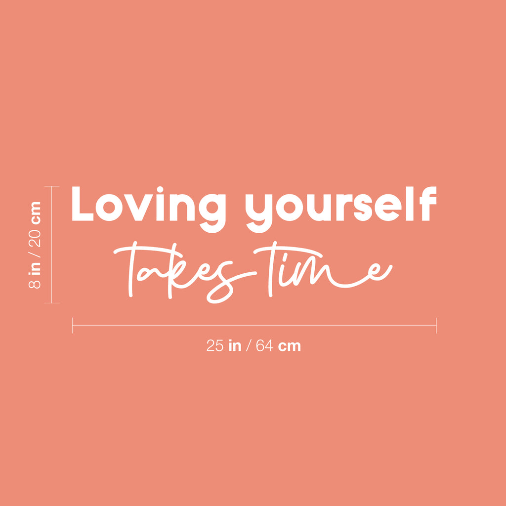This awesome motivational & lovely decal quote "Loving Yourself Takes Time"; is the perfect touch for your home or school. Use it for your living room; playroom; office or anywhere you want to bring some extra cute decoration. It's a vinyl sticker that is easy to put on any smooth and dry surface. Our modern designs don't just brighten up the room; but brighten up the day. Using top of the line vinyl across all of our production allows us to be the leaders in quality and design.
