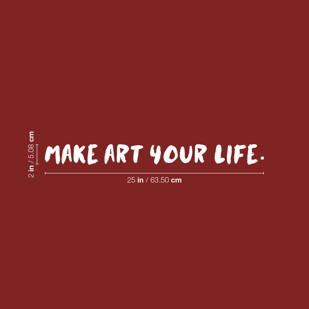This modern motivational decal quote "Make Art Your Life"; is the perfect touch for your home or work. Use it for your living room; bedroom; office or anywhere you want to bring some extra decoration. It's a vinyl sticker that is easy to put on any smooth and dry surface. Our modern designs don't just brighten up the room; but brighten up the day. Using top of the line vinyl across all of our production allows us to be the leaders in quality and design.