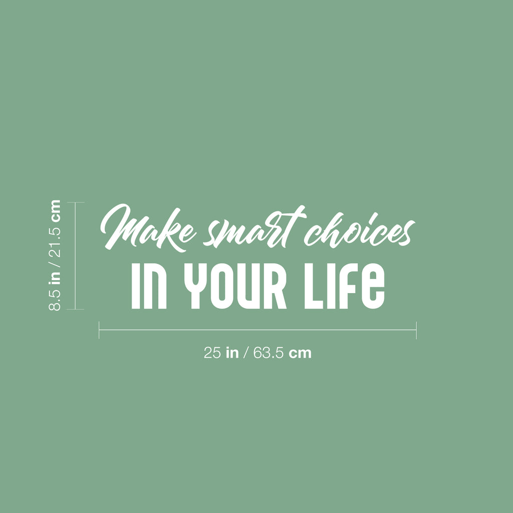 This great decal quote "Make Smart Choices In Your Life"; is the perfect touch for your home. Use it for your kids room; living room or anywhere you want to bring some extra decoration. It's a vinyl sticker that is easy to put on any smooth and dry surface. Our modern designs don't just brighten up the room; but brighten up the day. Using top of the line vinyl across all of our production allows us to be the leaders in quality and design.