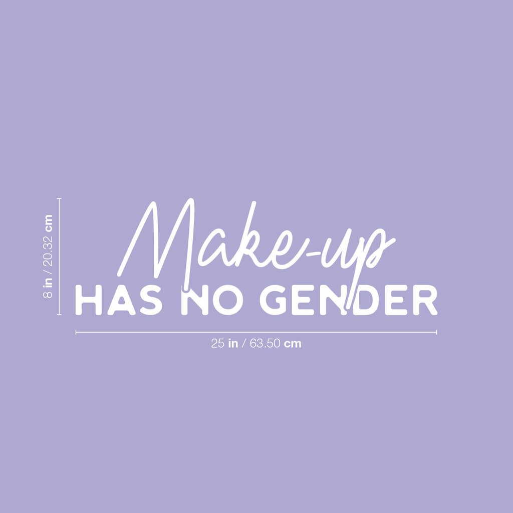 This awesome decal quote "Make Up Has No Gender"; is the perfect touch for your home or store. Use it for your home; living room or office space. It's a vinyl sticker that is easy to put on any smooth and dry surface. Our modern designs don't just brighten up the room; but brighten up the day. Using top of the line vinyl across all of our production allows us to be the leaders in quality and design.