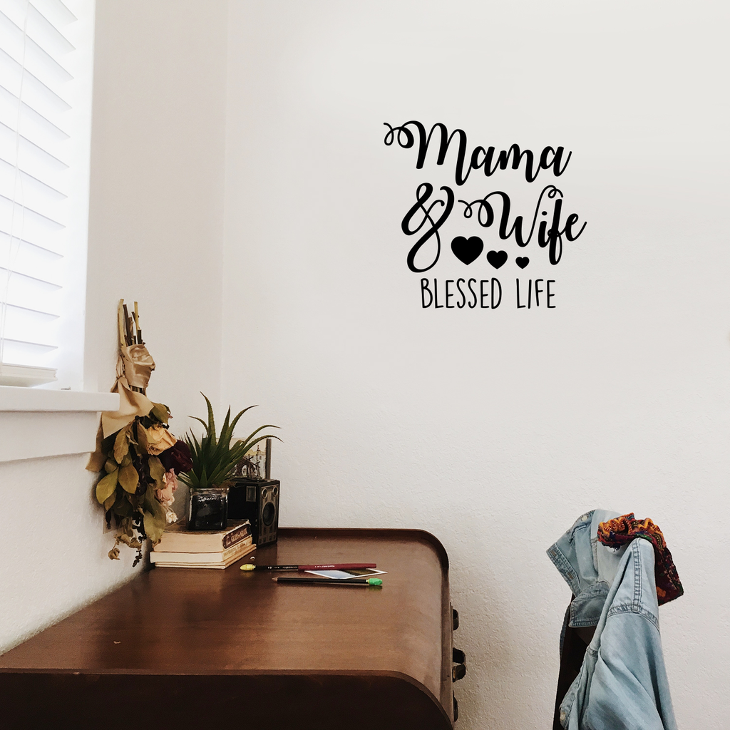 This awesome decal quote "Mama And Wife Blessed Life"; is the perfect touch for your home or apartment. Use it for your living room; house or anywhere you want to bring some extra cute decoration. It's a vinyl sticker that is easy to put on any smooth and dry surface. Our modern designs don't just brighten up the room; but brighten up the day. Using top of the line vinyl across all of our production allows us to be the leaders in quality and design.