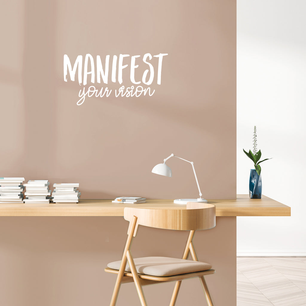 This awesome motivating decal quote "Manifest Your Vision"; is the perfect touch for your home or school. Use it for your living room; playroom; kids room or anywhere you want to bring some extra cute decoration. It's a vinyl sticker that is easy to put on any smooth and dry surface. Our modern designs don't just brighten up the room; but brighten up the day. Using top of the line vinyl across all of our production allows us to be the leaders in quality and design.