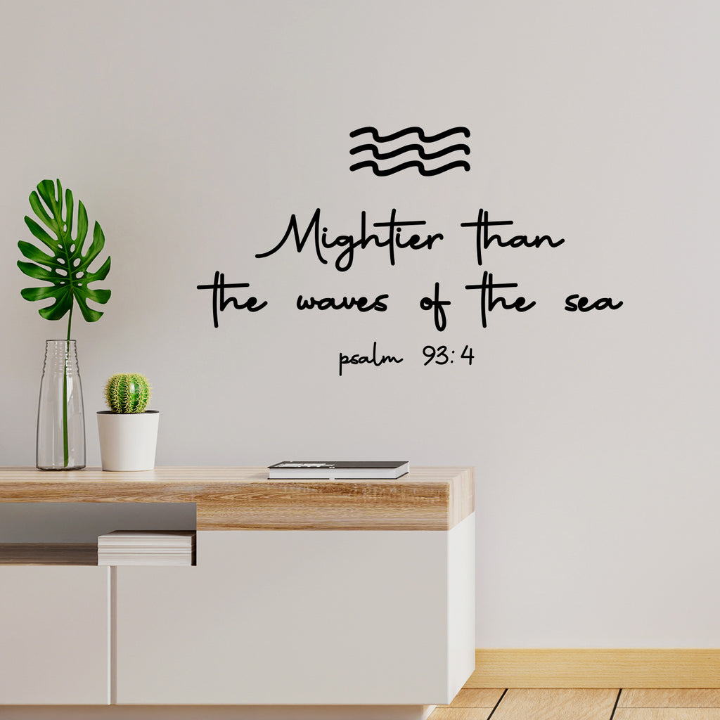 This decal quote "Mightier Than The Waves Of The Sea Psalm 93:4"; is the perfect touch for your home or work. Use it for your dorm room; home office or anywhere you want to bring some extra decoration. It's a vinyl sticker that is easy to put on any smooth and dry surface. Our modern designs don't just brighten up the room; but brighten up the day. Using top of the line vinyl across all of our production allows us to be the leaders in quality and design.