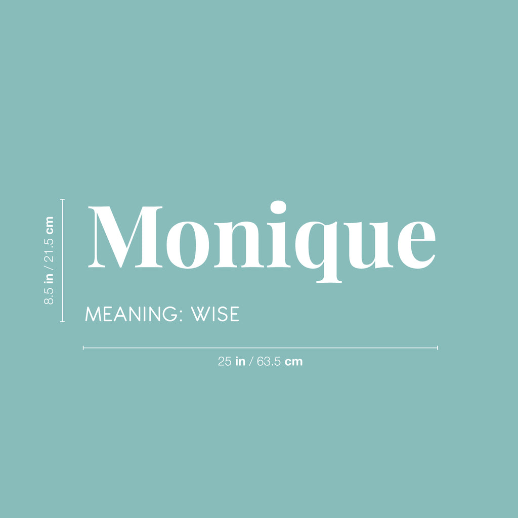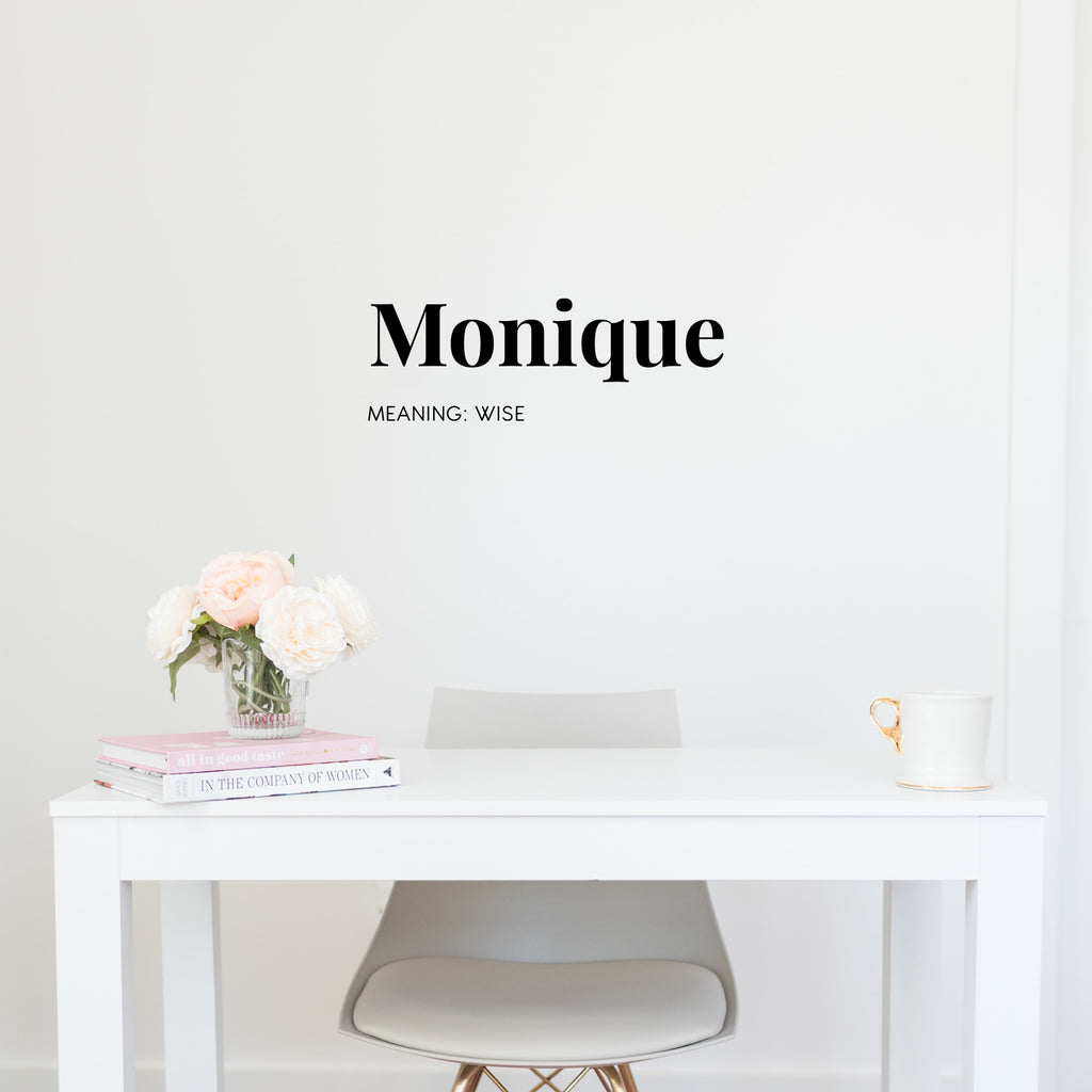 This awesome fun decal quote "Monique Meaning"; is the perfect touch for your home or office. Use it for your bedroom; living room; classroom or anywhere you want to bring some extra positive decoration. It's a vinyl sticker that is easy to put on any smooth and dry surface. Our modern designs don't just brighten up the room; but brighten up the day. Using top of the line vinyl across all of our production allows us to be the leaders in quality and design.