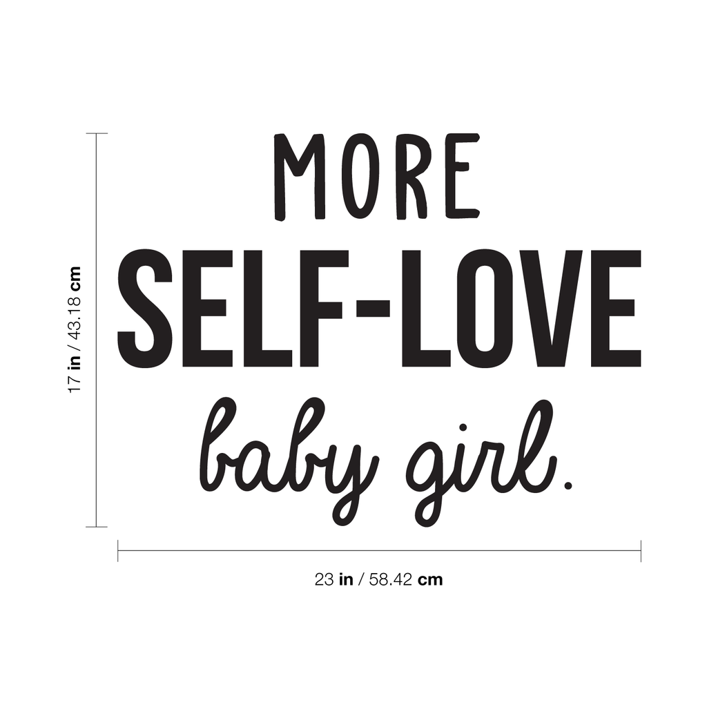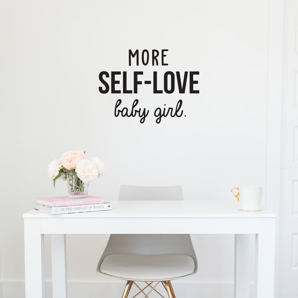 This positive girly decal quote "More Self-Love Baby Girl"; is the perfect touch for your home or office. Use it for your bedroom; girls room or anywhere you want to bring some extra cute decoration. It's a vinyl sticker that is easy to put on any smooth and dry surface. Our modern designs don't just brighten up the room; but brighten up the day. Using top of the line vinyl across all of our production allows us to be the leaders in quality and design.