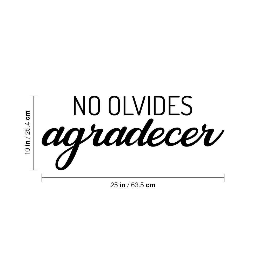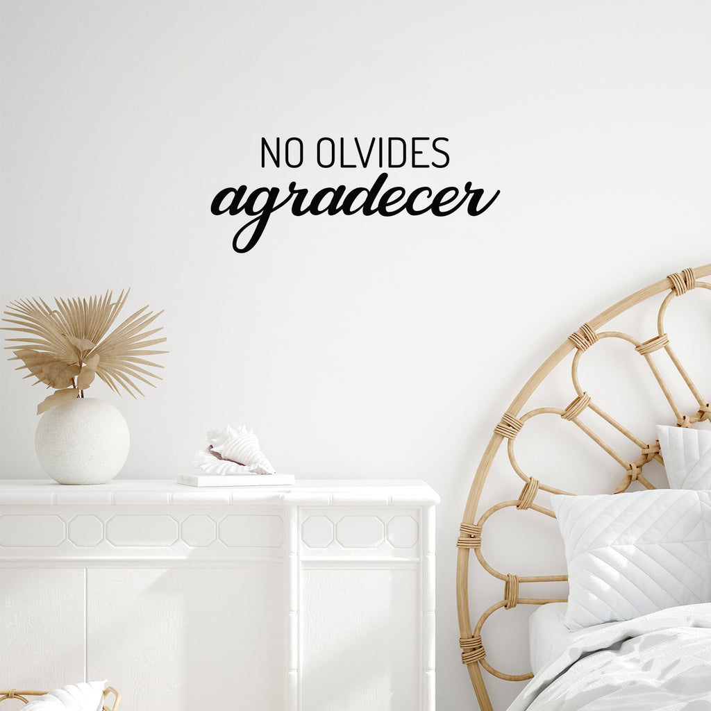 This awesome positive decal quote "No Olvides Agradecer / Do Not Forget To Thank"; is the perfect touch for your home or office. Use it for your school; living room or anywhere you want to bring some extra optimistic decoration. It's a vinyl sticker that is easy to put on any smooth and dry surface. Our modern designs don't just brighten up the room; but brighten up the day. Using top of the line vinyl across all of our production allows us to be the leaders in quality and design.