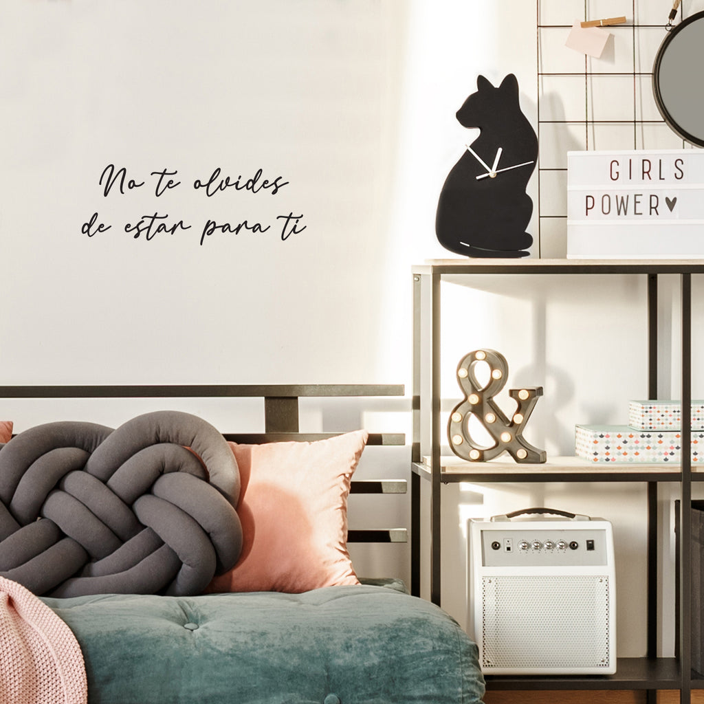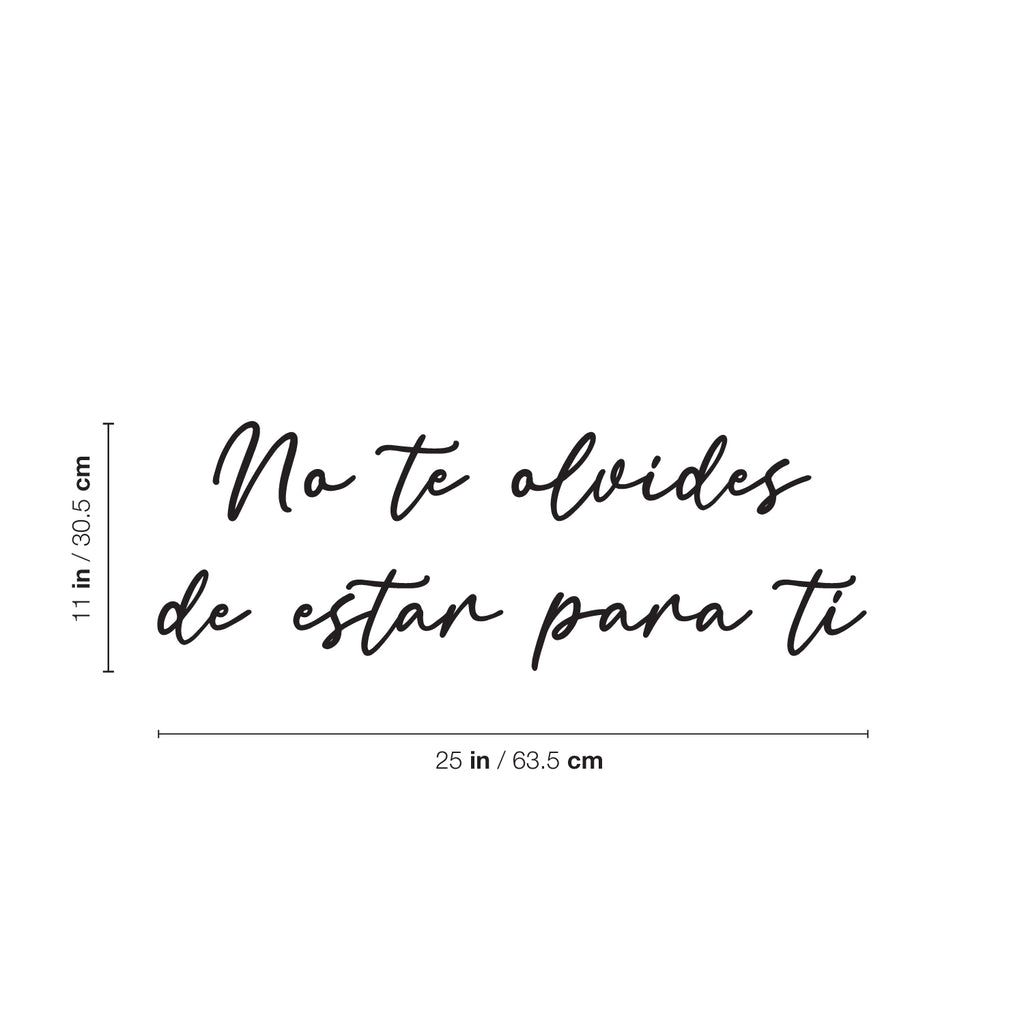 This awesome positive decal quote "No Te Olvides De Estar Para Ti / Don't Forget To Be There For You"; is the perfect touch for your home or office. Use it for your bedroom; living room; classroom or anywhere you want to bring some extra positive decoration. It's a vinyl sticker that is easy to put on any smooth and dry surface. Our modern designs don't just brighten up the room; but brighten up the day. Using top of the line vinyl across all of our production allows us to be the leaders in quality and design.