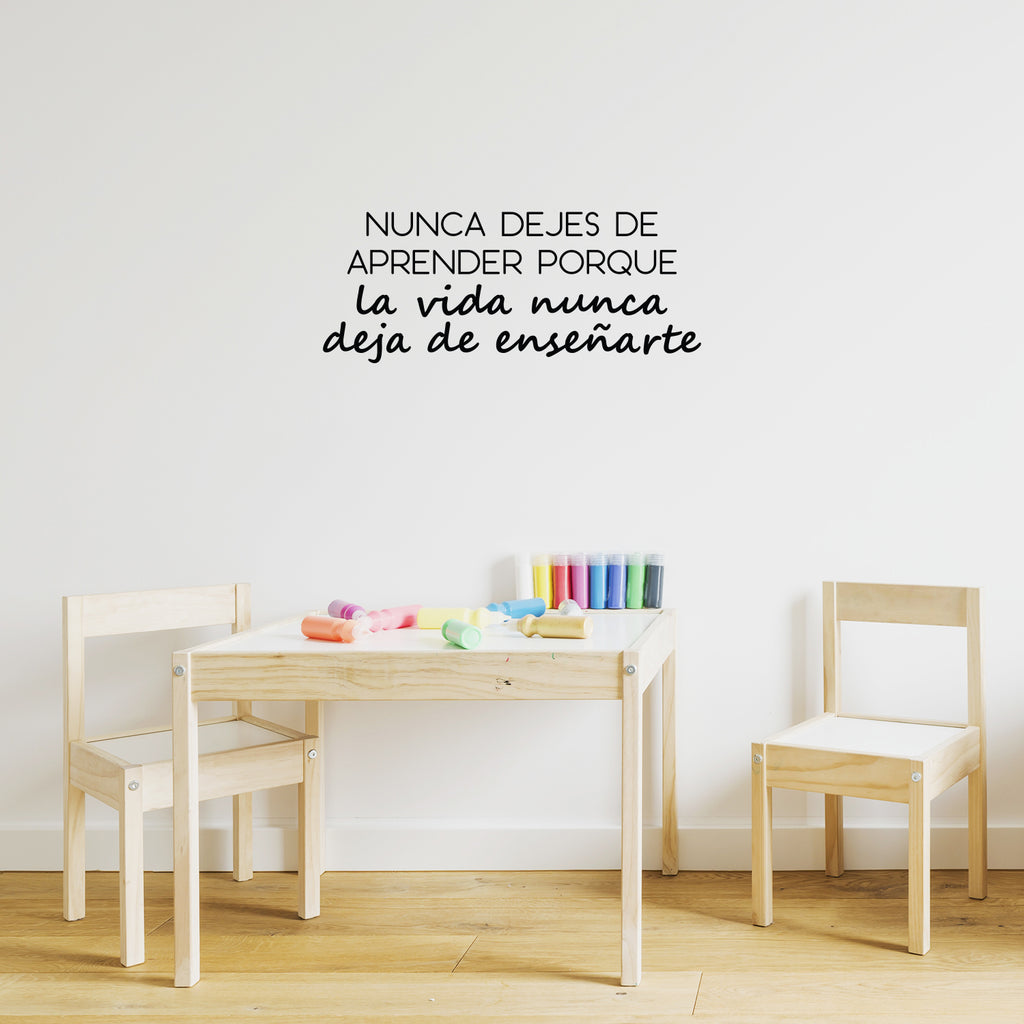 Vinyl Wall Art Decal - Nunca Dejes De Aprender / Never Stop Learning Because Life Never Stops Teaching You - Trendy Positive Spanish Sticker For Home School Office Decor
