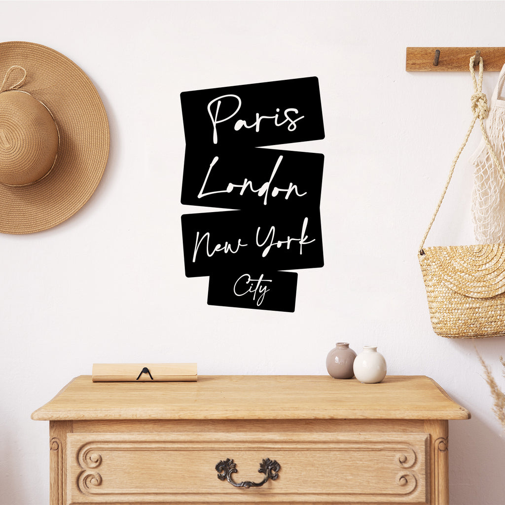 This awesome inspirational decal quote "Paris London New York"; is the perfect touch for your home. Use it for your kids bedroom; playroom; daycare or anywhere you want to bring some extra cute decoration. It's a vinyl sticker that is easy to put on any smooth and dry surface. Our modern designs don't just brighten up the room; but brighten up the day. Using top of the line vinyl across all of our production allows us to be the leaders in quality and design.