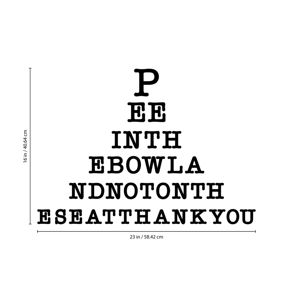 This humorous "Pee In The Bowl And Not On The Seat Thank You" life quotes wall art decal is sarcastic and the perfect touch for indoor decoration. It’s a vinyl sticker that is easy to put on almost any smooth surface and really brings a room together adding the perfect touch of decoration. This vinyl decal quote is great to put in your bathroom and gives a touch of witty character. Our modern quotes don’t just brighten up the room; but brighten up the day. Using top of the line vinyl across all of our production allows us to be the leaders in quality and design.The easiest surfaces for vinyl to stick on is Windows Walls Mirrors Dorm Rooms Cars Lockers Flat and Smooth Surfaces Tables and Glass CabinetsAll vinyl packages come with easy to follow instructions further explaining just how simple it is to apply vinyl on and off your surface of choice. Prior to applying the vinyl; be sure the surface is clean and oil free for best results. This vinyl is waterproof and is not permanent so it’s not only easy to use but easy to remove as well. In general; vinyl lettering is one of the latest and greatest trends in home decoration. Because our products are high quality; they give the illusion of painted wall art without the mess; cost; or time. What are you waiting for? Let’s get crafty!