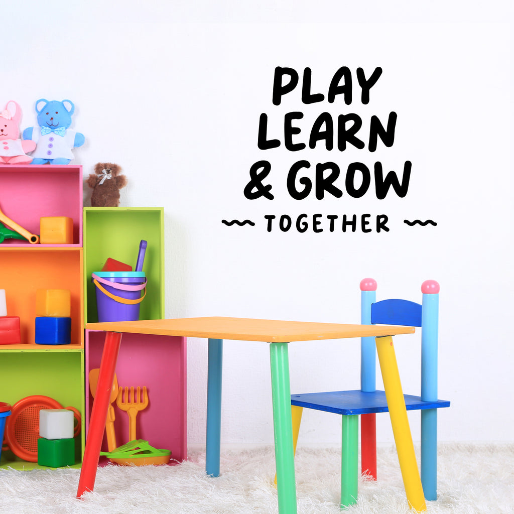 This cute decal quote "Play Learn And Grow Together" is the perfect touch for your home. Use it for your nursery; playroom; kids room or anywhere you want to bring some extra cute decoration. It's a vinyl sticker that is easy to put on any smooth and dry surface. Our modern designs don't just brighten up the room; but brighten up the day. Using top of the line vinyl across all of our production allows us to be the leaders in quality and design.