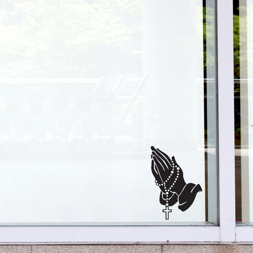 This decal quote "Praying Hands With Rosary Beads"; is the perfect touch for your home. Use it for your dresser mirror; car bumpers; laptops; office or anywhere you want to bring some extra cute decoration. It's a vinyl sticker that is easy to put on any smooth and dry surface. Our modern designs don't just brighten up the room; but brighten up the day. Using top of the line vinyl across all of our production allows us to be the leaders in quality and design.