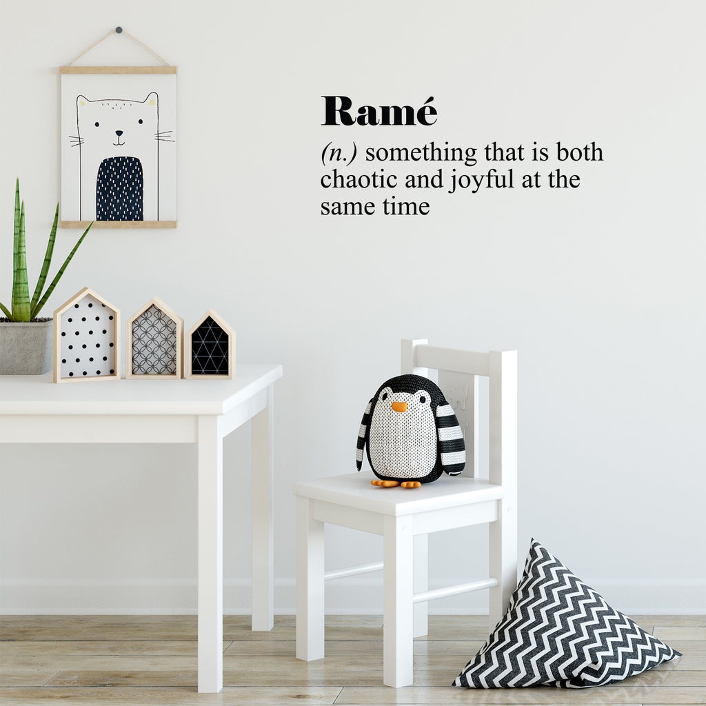 This inspirational decal quote "Rame. Something That Is Both Chaotic And Joyful At The Same Time"; is the perfect touch for your home or office. Use it for your bedroom; office; living room or anywhere you want to bring some extra positive decoration. It's a vinyl sticker that is easy to put on any smooth and dry surface. Our modern designs don't just brighten up the room; but brighten up the day. Using top of the line vinyl across all of our production allows us to be the leaders in quality and design.