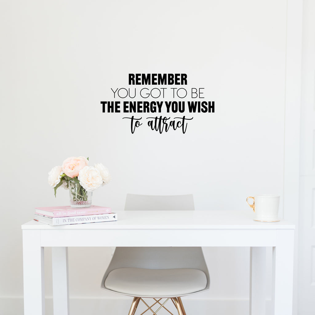 This decal quote "Remember You Got To Be The Energy You Wish To Attract"; is the perfect touch for your home. Use it for your living room; office or anywhere you want to bring some extra inspiring decoration. It's a vinyl sticker that is easy to put on any smooth and dry surface. Our modern designs don't just brighten up the room; but brighten up the day. Using top of the line vinyl across all of our production allows us to be the leaders in quality and design.