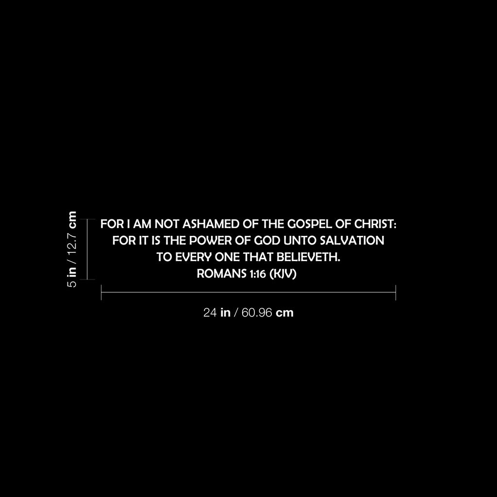 This awesome decal quote "For I Am Not Ashamed Of The Gospel Of Christ: For It Is The Power Of God Unto Salvation To Every One That Believeth. Romans 1:16 (KJV)"; is the perfect touch for your home. Use it for your bedroom; office or anywhere you want to bring some extra religious decoration. It's a vinyl sticker that is easy to put on any smooth and dry surface. Our modern designs don't just brighten up the room; but brighten up the day. Using top of the line vinyl across all of our production allows us to be the leaders in quality and design.