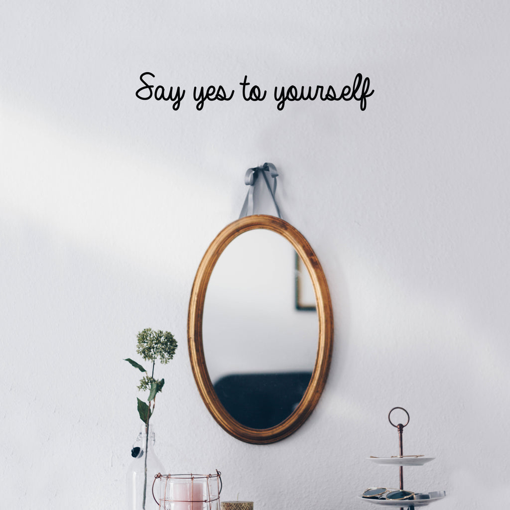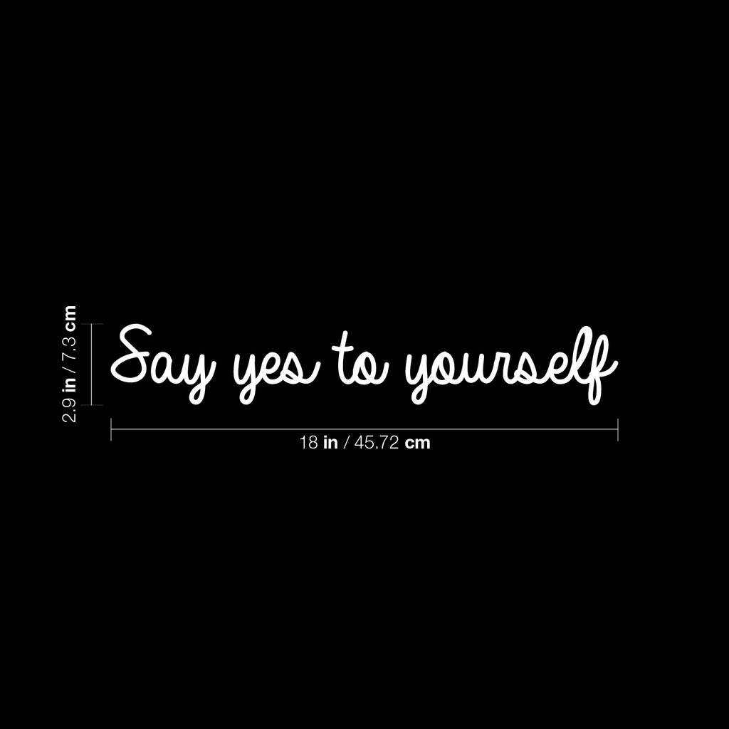 This motivational & positive decal quote "Say Yes To Yourself"; is the perfect touch for your school or office. Use it for your playroom; kids room or anywhere you want to bring some extra inspirational decoration. It's a vinyl sticker that is easy to put on any smooth and dry surface. Our modern designs don't just brighten up the room; but brighten up the day. Using top of the line vinyl across all of our production allows us to be the leaders in quality and design.