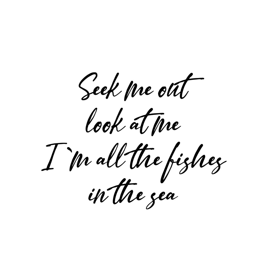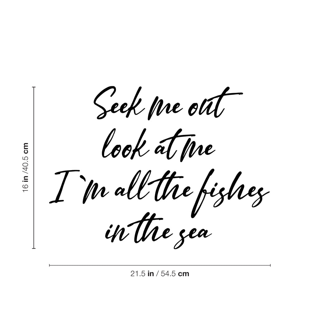 This awesome inspirational decal quote "Seek Me Out Look At Me I'm All The Fishes In The Sea"; is the perfect touch for your home or coffee shop. Use it for your living room; dorm room or anywhere you want to bring some extra cute decoration. It's a vinyl sticker that is easy to put on any smooth and dry surface. Our modern designs don't just brighten up the room; but brighten up the day. Using top of the line vinyl across all of our production allows us to be the leaders in quality and design.