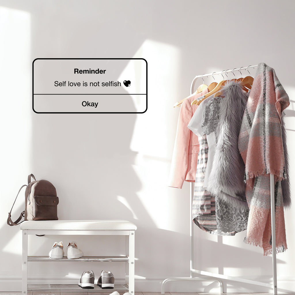 This great decal quote "Reminder: Self Love Is Not Selfish"; is the perfect touch for your home. Use it for your dorm room; living room or anywhere you want to bring some extra decoration. It's a vinyl sticker that is easy to put on any smooth and dry surface. Our modern designs don't just brighten up the room; but brighten up the day. Using top of the line vinyl across all of our production allows us to be the leaders in quality and design.
