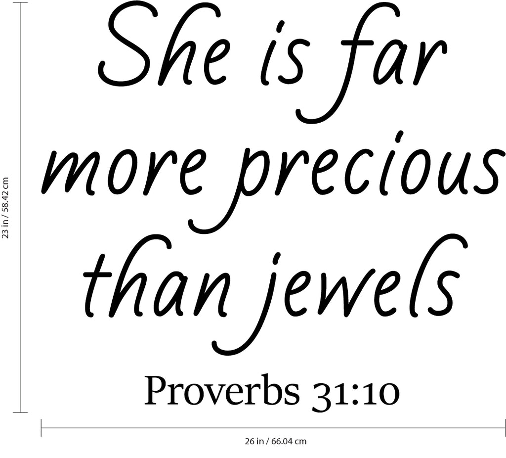 Vinyl Wall Art Decal - She is Far More Precious Than Jewels Prov 31:10-- Religious Bedroom Apartment Decor Decals - Christian Home Living Room Office Quotes (23" x 26"; Black)