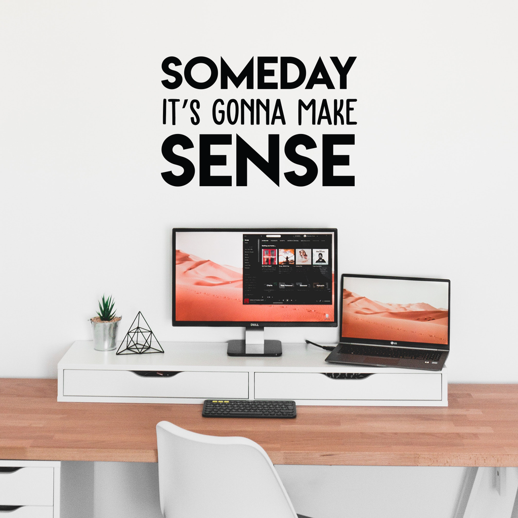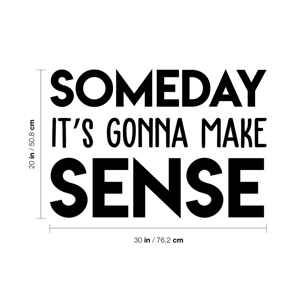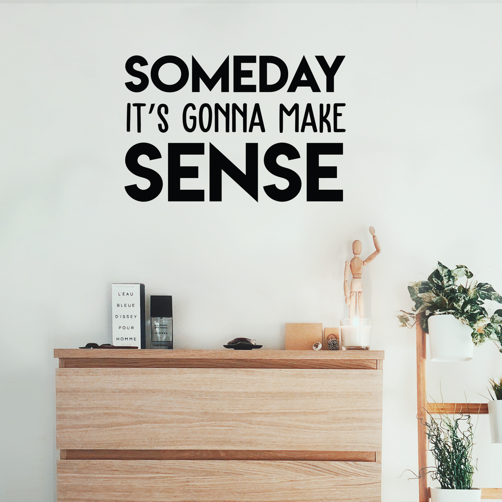 This awesome positive decal quote "Someday It's Gonna Make Sense"; is the perfect touch for your home or office. Use it for your dorm room; living room or anywhere you want to bring some extra optimistic decoration. It's a vinyl sticker that is easy to put on any smooth and dry surface. Our modern designs don't just brighten up the room; but brighten up the day. Using top of the line vinyl across all of our production allows us to be the leaders in quality and design.
