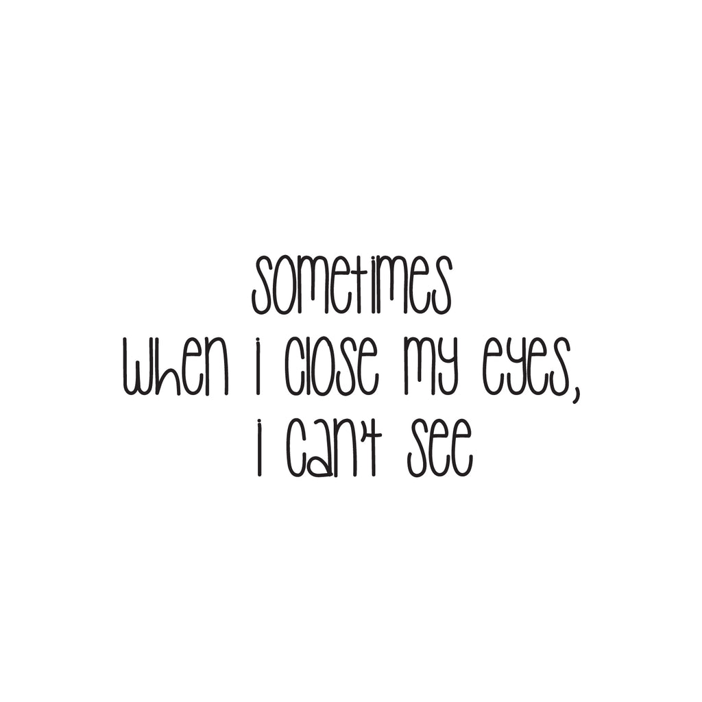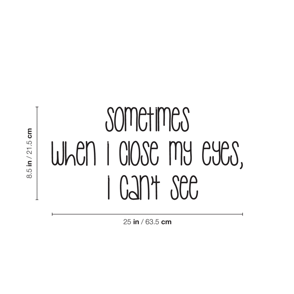 This awesome inspirational decal quote "Sometimes When I Close My Eyes I Cant See"; is the perfect touch for your home. Use it for your kids bedroom; playroom; daycare or anywhere you want to bring some extra fun decoration. It's a vinyl sticker that is easy to put on any smooth and dry surface. Our modern designs don't just brighten up the room; but brighten up the day. Using top of the line vinyl across all of our production allows us to be the leaders in quality and design.