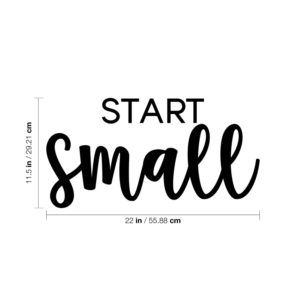 This awesome cute decal quote "Start Small"; is the perfect touch for your home or work. Use it for your bedroom; closet; living room or anywhere you want to bring some extra positive decoration. It's a vinyl sticker that is easy to put on any smooth and dry surface. Our modern designs don't just brighten up the room; but brighten up the day. Using top of the line vinyl across all of our production allows us to be the leaders in quality and design.