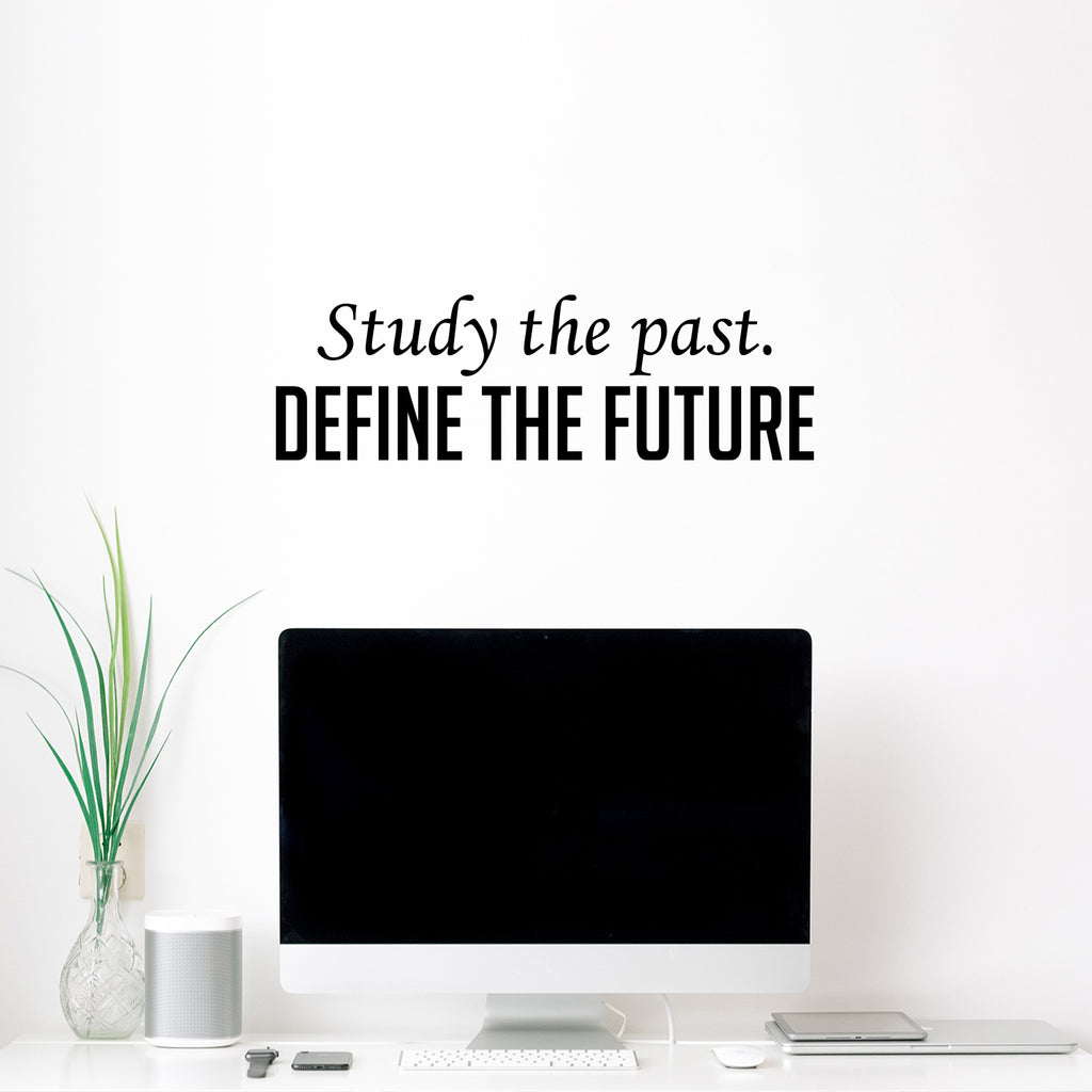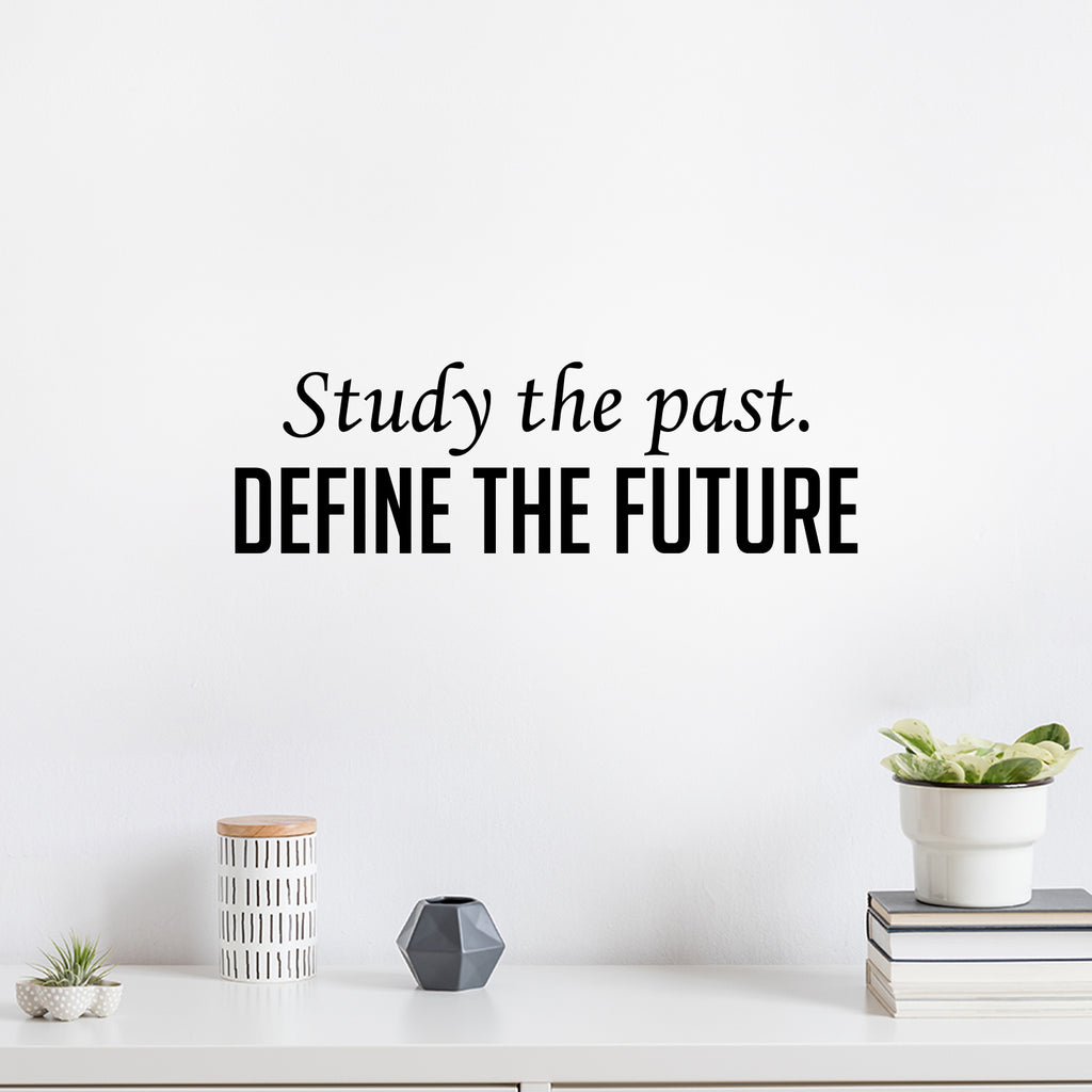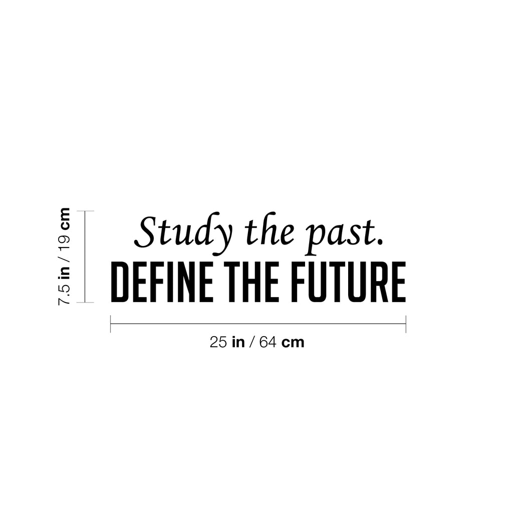 This awesome positive decal quote "Study The Past. Define The Future"; is the perfect touch for your fitness center or home. Use it for your office; living room; storefront or anywhere you want to bring some extra positive decoration. It's a vinyl sticker that is easy to put on any smooth and dry surface. Our modern designs don't just brighten up the room; but brighten up the day. Using top of the line vinyl across all of our production allows us to be the leaders in quality and design.