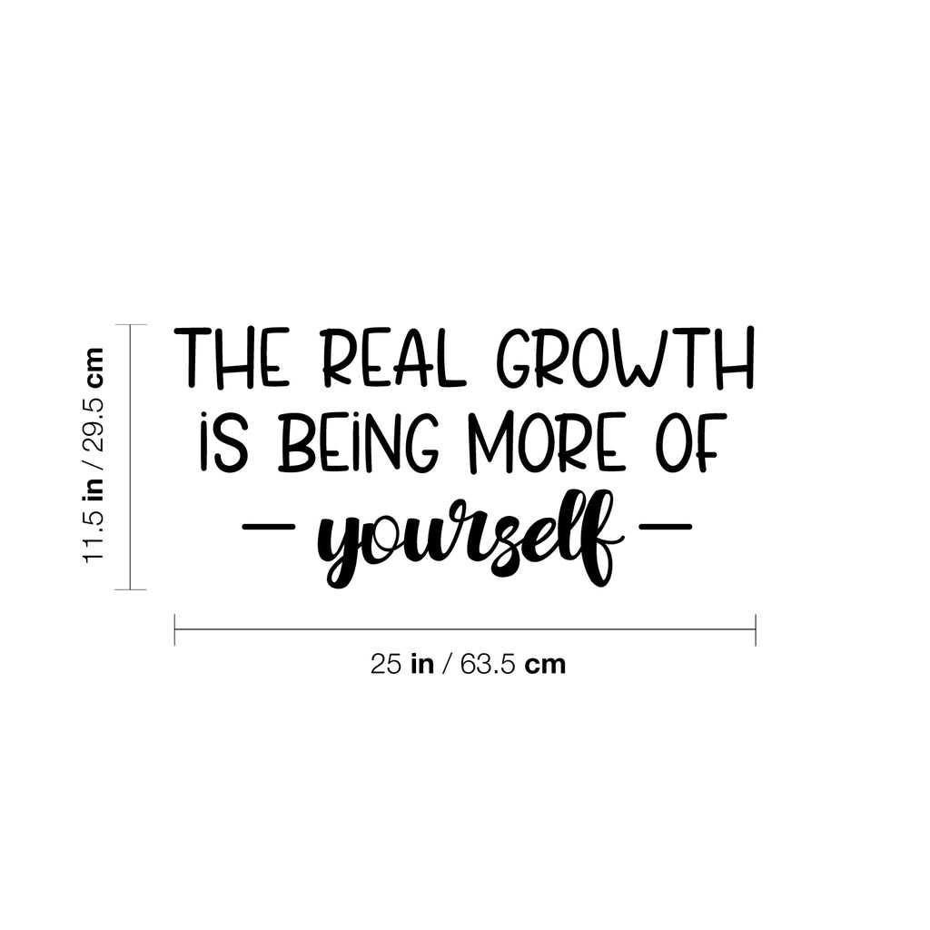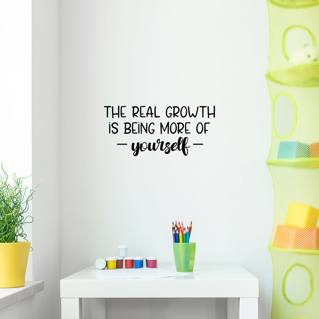 This great decal quote "The Real Growth Is Being More Of Yourself"; is the perfect touch for your home. Use it for your makeup area; dorm room or anywhere you want to bring some extra decoration. It's a vinyl sticker that is easy to put on any smooth and dry surface. Our modern designs don't just brighten up the room; but brighten up the day. Using top of the line vinyl across all of our production allows us to be the leaders in quality and design.