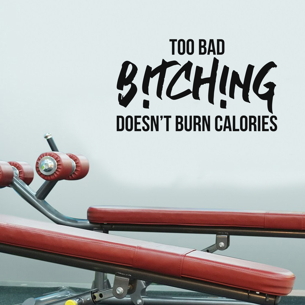 This humorous quote "Too Bad Bitching Doesn't Burn Calories"; is the perfect touch for your home or gym. Use it for your bedroom; exercise room; dorm room or anywhere you want to bring some extra decoration. It's a vinyl sticker that is easy to put on any smooth and dry surface. Our modern designs don't just brighten up the room; but brighten up the day. Using top of the line vinyl across all of our production allows us to be the leaders in quality and design.