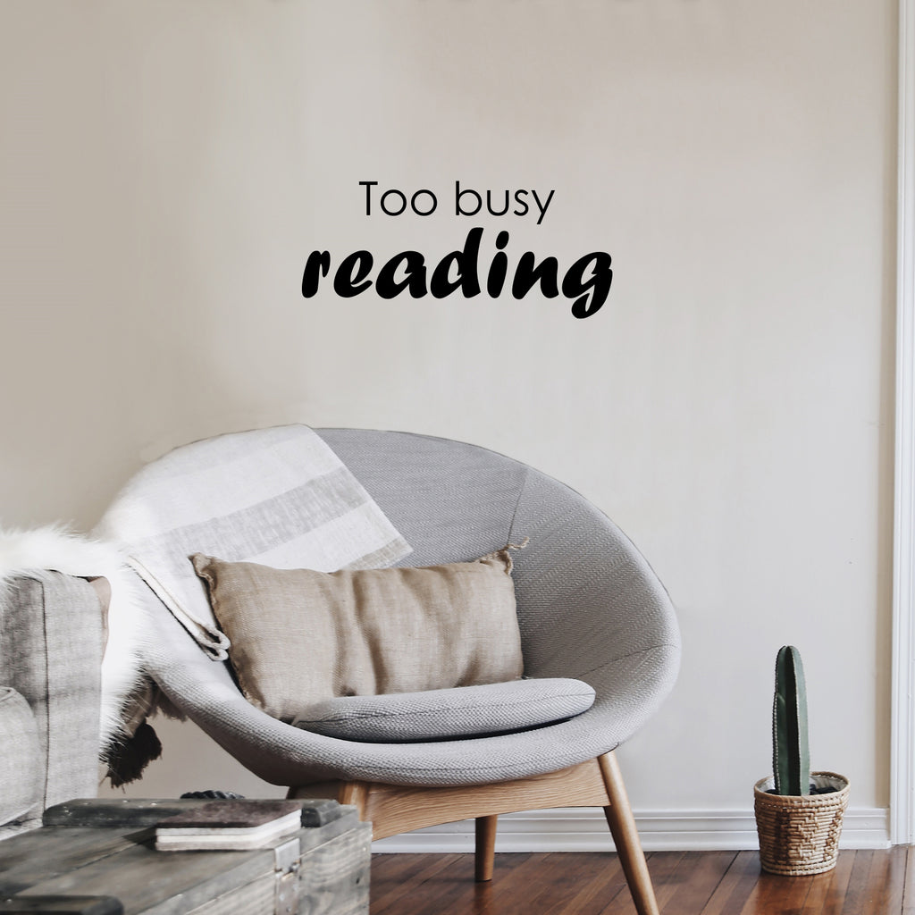 Vinyl Wall Art Decal - Too Busy Reading - Modern Motivating Optimistic Classroom Quote Sticker For Living Room Playroom School Library Educational Decor