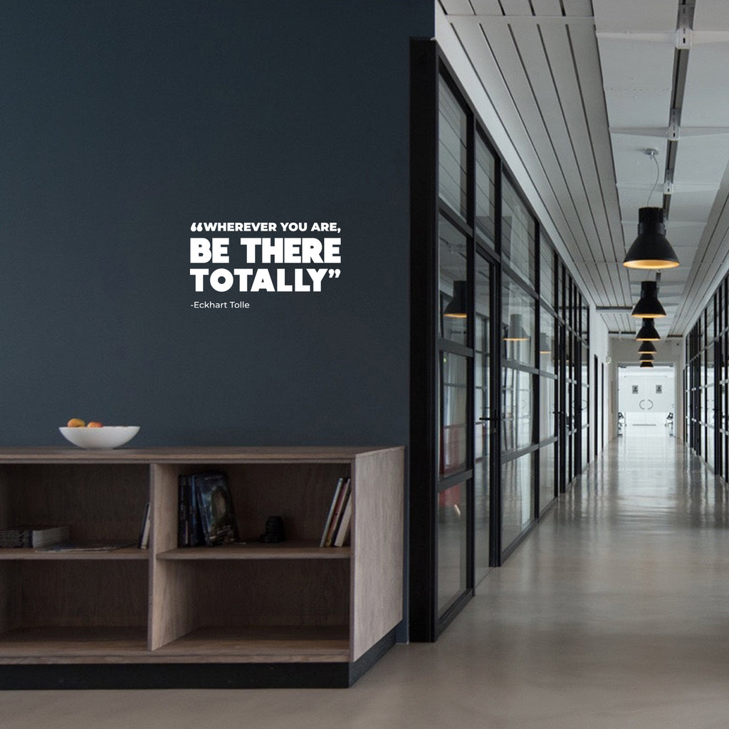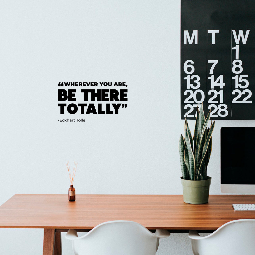 This awesome motivational decal quote "Wherever You Are Be There Totally"; is the perfect touch for your home or office. Use it for your living room; coffee shop; storefront or anywhere you want to bring some extra inspiring decoration. It's a vinyl sticker that is easy to put on any smooth and dry surface. Our modern designs don't just brighten up the room; but brighten up the day. Using top of the line vinyl across all of our production allows us to be the leaders in quality and design.