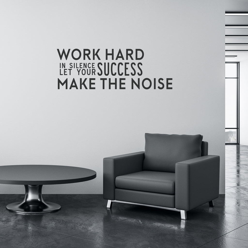 Work Hard in Silence and Let Your Success Make The Noise - Inspirational Quotes Wall Art Vinyl Decal - Decoration Vinyl Sticker - Motivational Wall Art Decal - Home Office Vinyl (White)