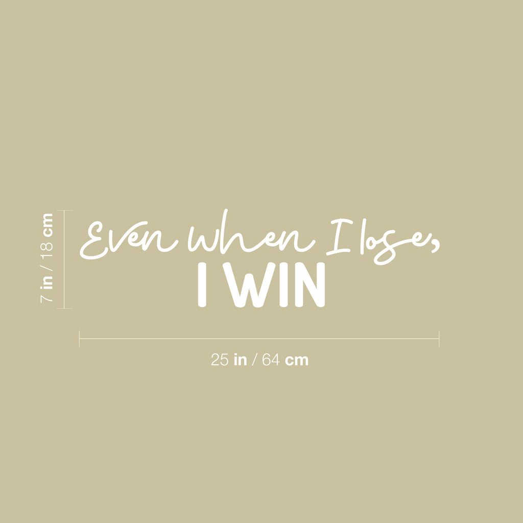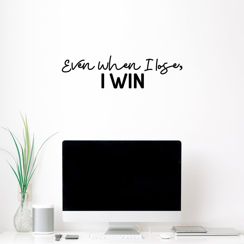This cute decal quote "Even When I Lose I Win"; is the perfect touch for your school or office. Use it for your living room; office; living room or anywhere you want to bring some extra inspirational decoration. It's a vinyl sticker that is easy to put on any smooth and dry surface. Our modern designs don't just brighten up the room; but brighten up the day. Using top of the line vinyl across all of our production allows us to be the leaders in quality and design.