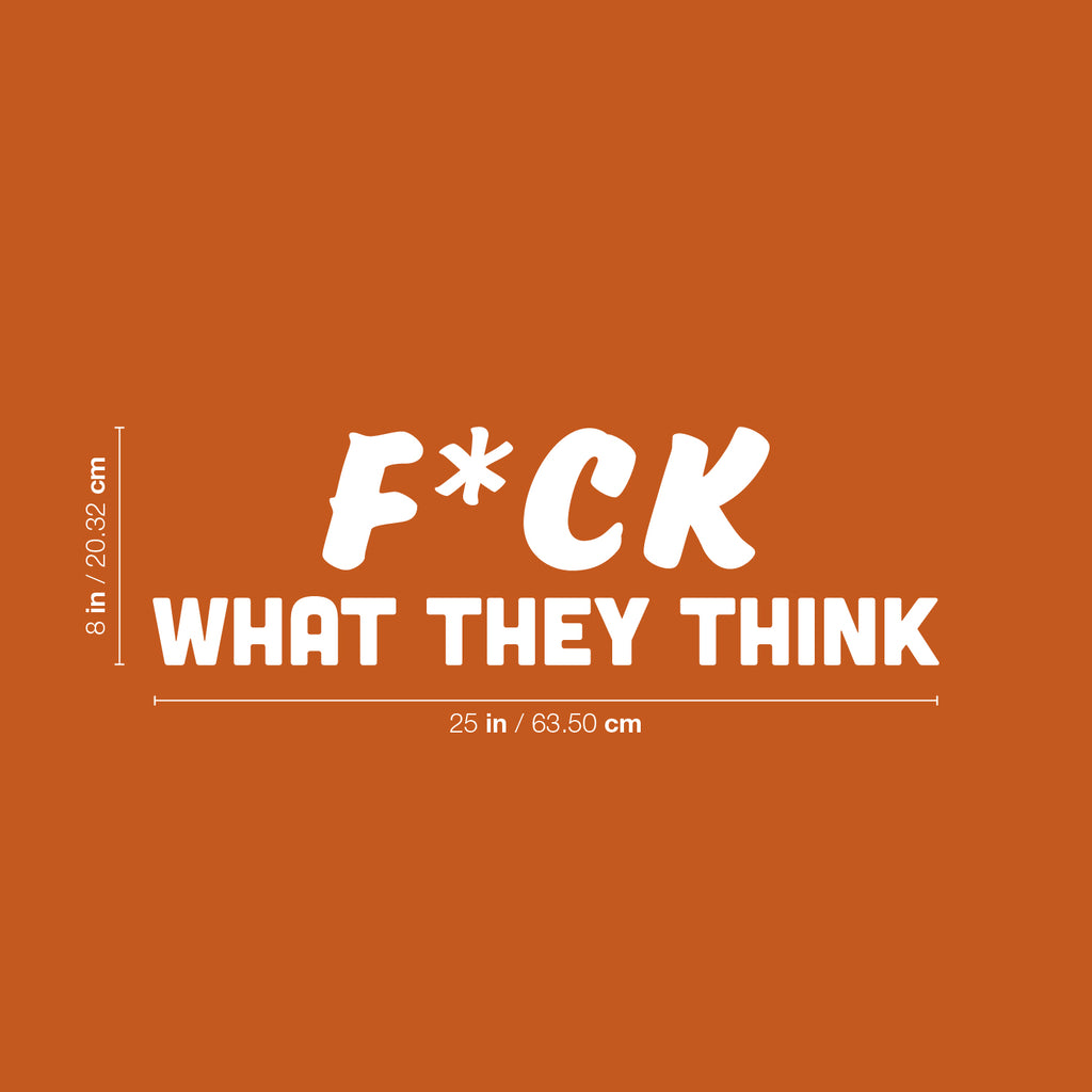 This empowering decal quote "F*ck What They Think"; is the perfect touch for your home or work. Use it for your dorm room; home office or anywhere you want to bring some extra decoration. It's a vinyl sticker that is easy to put on any smooth and dry surface. Our modern designs don't just brighten up the room; but brighten up the day. Using top of the line vinyl across all of our production allows us to be the leaders in quality and design.