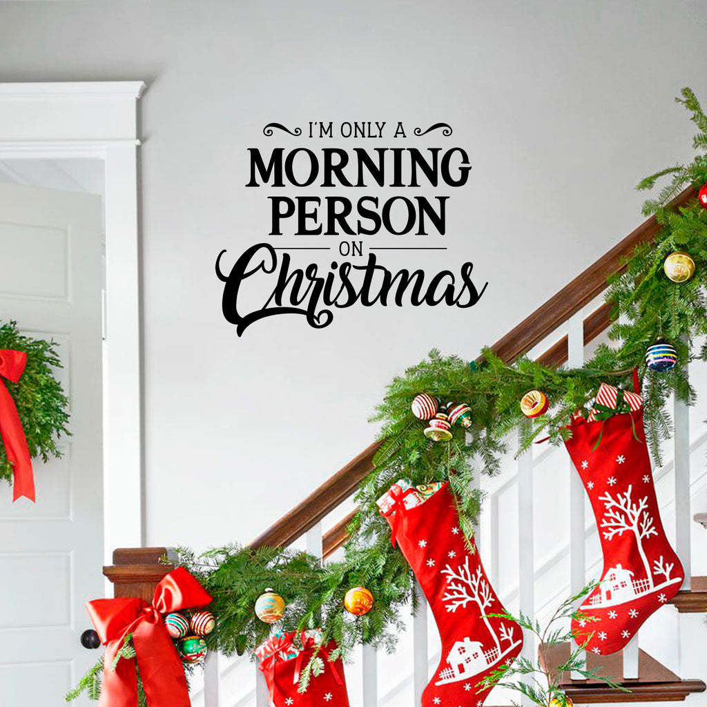 Vinyl Wall Art Decal - I’m Only A Morning Person On Christmas - 18" x 23" - Modern Funny Christmas Quote Sticker For Holiday Season Home Office Bedroom Kids Room Living Room Apartment Decor