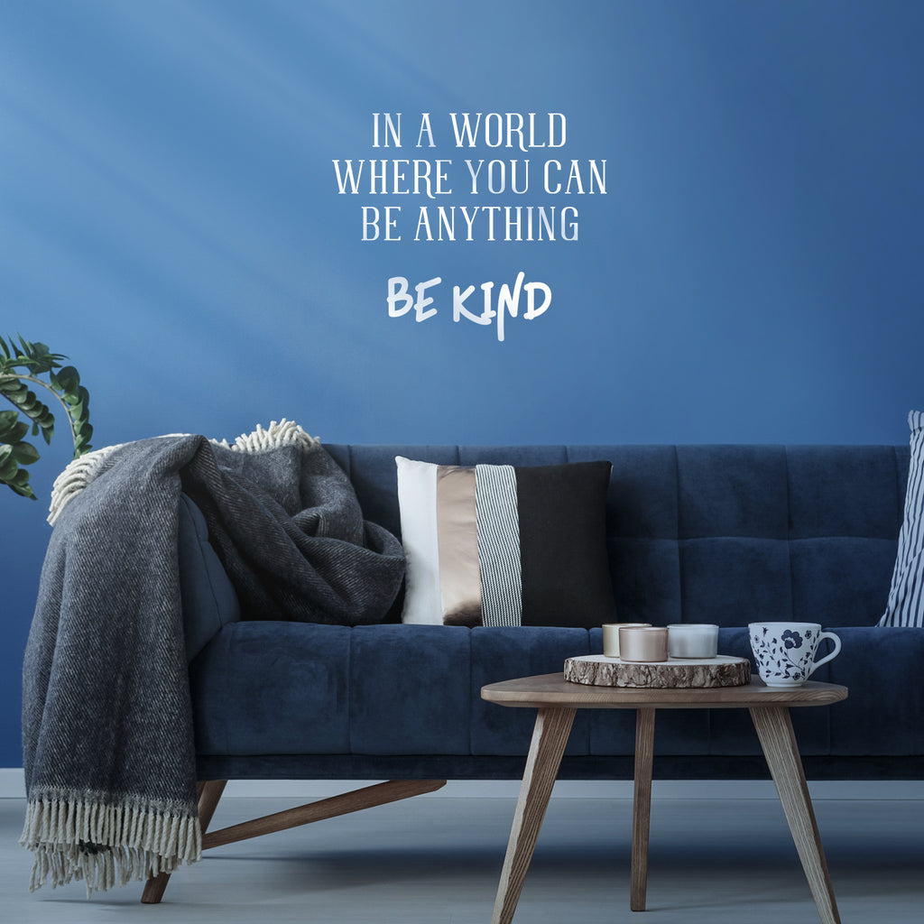 Vinyl Wall Art Decal - In A World Where You Can Be Anything Be Kind - 19" x 23" - Inspirational Modern Home Office Bedroom Living Room Work Apartment Decor Motivational Adhesive (19" x 23"; White)