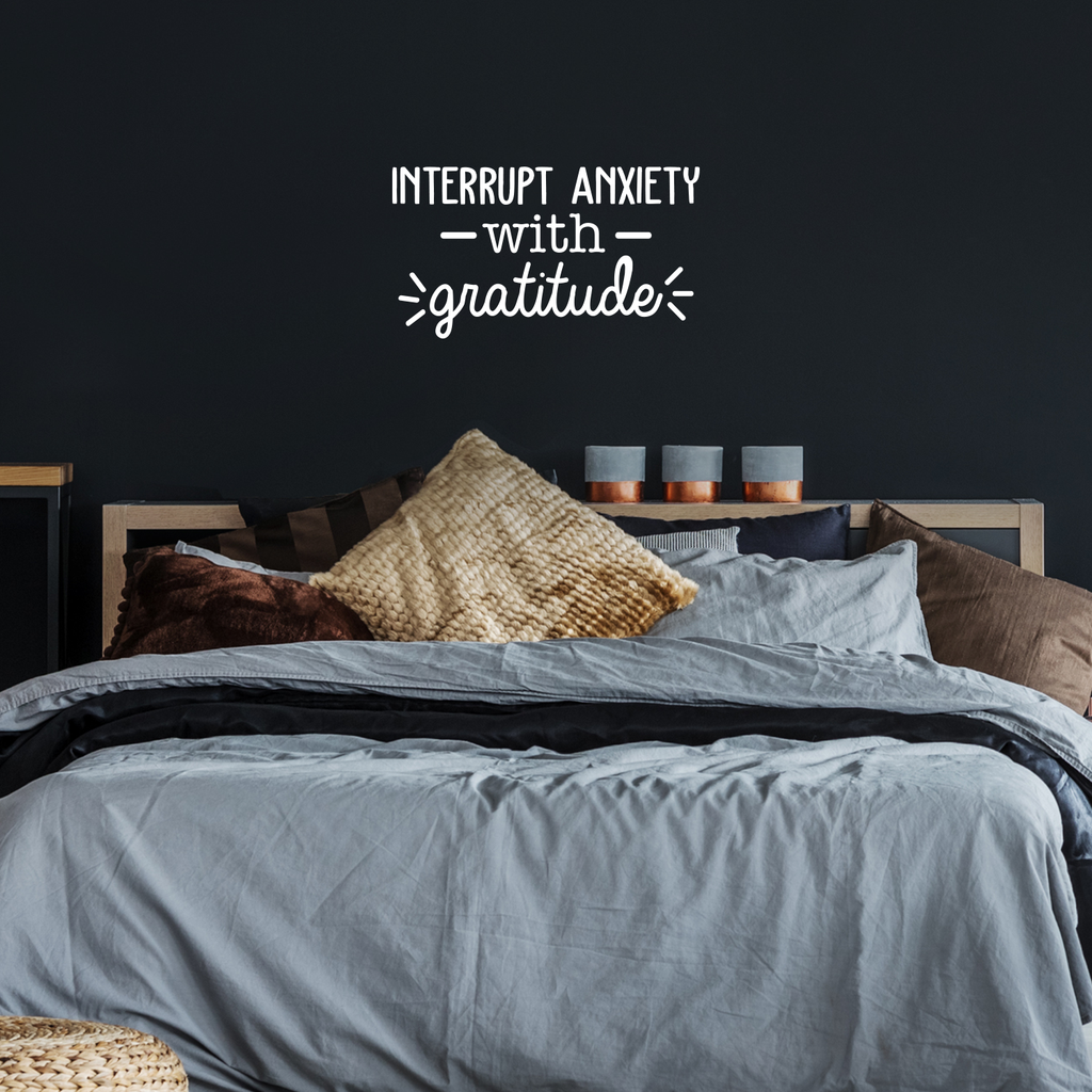 This awesome inspirational decal quote "Interrupt Anxiety With Gratitude"; is the perfect touch for your home or apartment. Use it for your bedroom; home office; dorm room or anywhere you want to bring some extra decoration. It's a vinyl sticker that is easy to put on any smooth and dry surface. Our modern designs don't just brighten up the room; but brighten up the day. Using top of the line vinyl across all of our production allows us to be the leaders in quality and design.