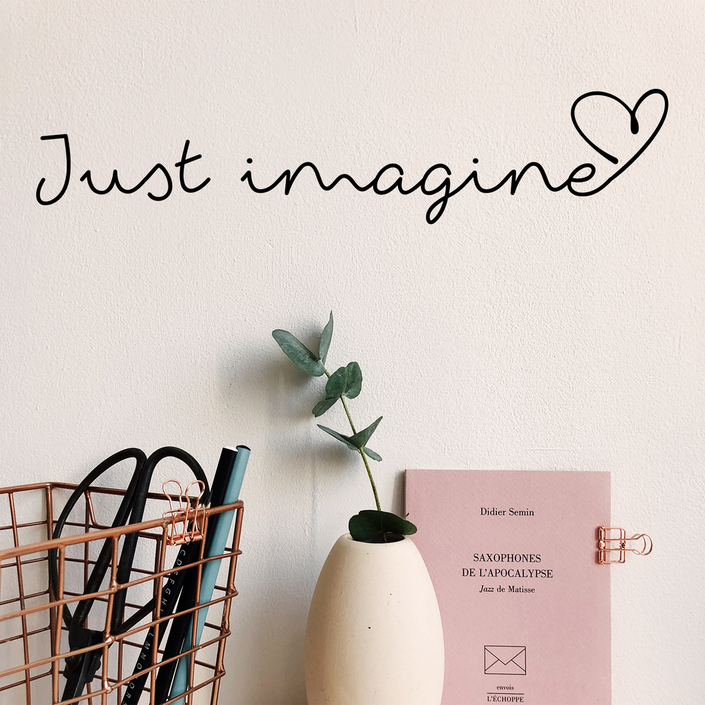 This super cute & inspirational decal quote "Just Imagine"; is the perfect touch for your home or school. Use it for your home school; kids room; office or anywhere you want to bring some extra motivational decoration. It's a vinyl sticker that is easy to put on any smooth and dry surface. Our modern designs don't just brighten up the room; but brighten up the day. Using top of the line vinyl across all of our production allows us to be the leaders in quality and design.