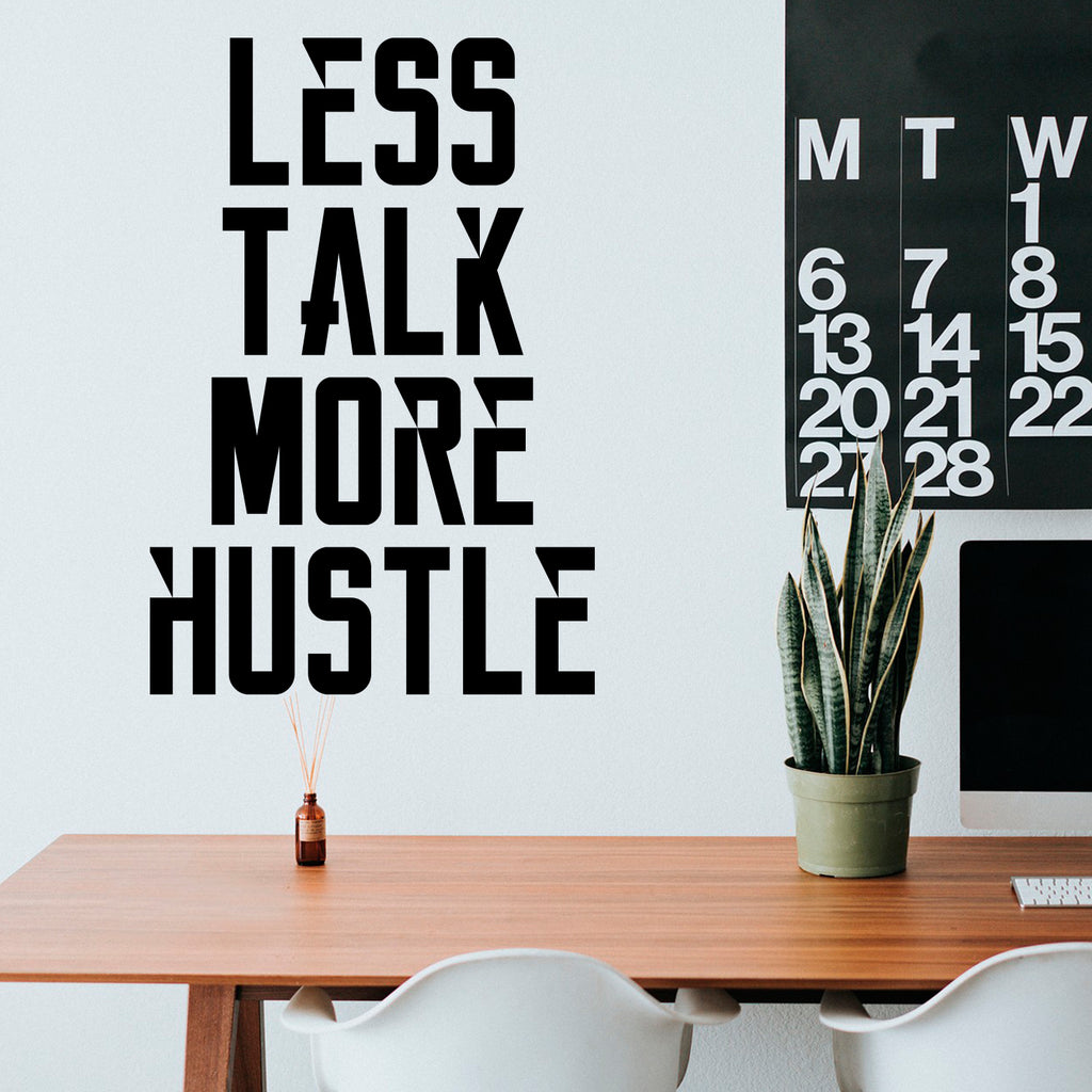 Vinyl Wall Art Decal - Less Talk More Hustle - 34" x 23" Inspirational Quotes - Decoration Vinyl Sticker - Motivational Wall Art Decal - Home Office Vinyl Wall Decor - Gym Fitness Stencil Adherent