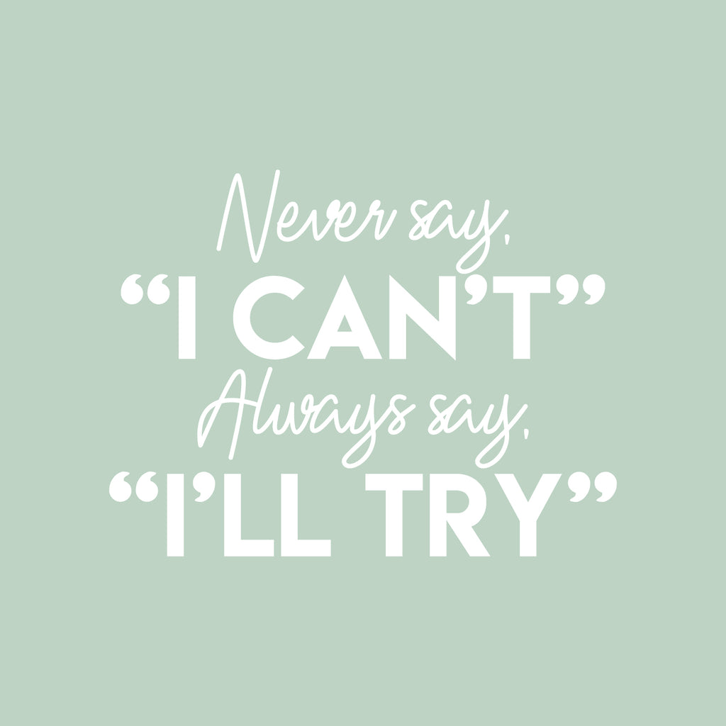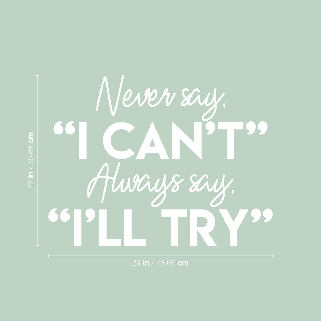 Vinyl Wall Art Decal - Never Say I Can't Always Say I'll Try - 22" x 29" - Modern Motivational Quote Sticker For Home School Bedroom Kids Room Classroom Work Office Decor