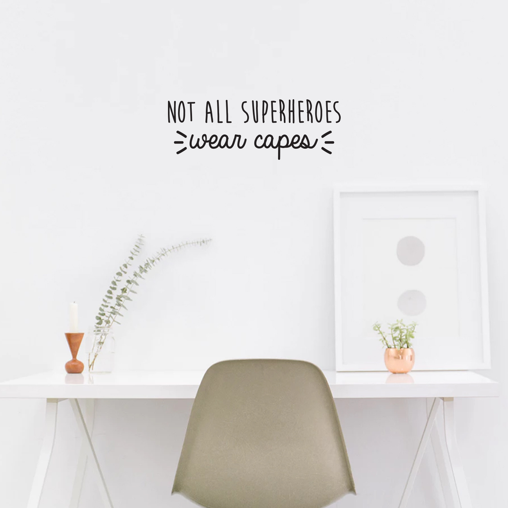 This awesome inspirational decal quote "Not All Superheroes Wear Capes"; is the perfect touch for your home. Use it for your bedroom or living room or anywhere you want to bring some extra decoration. It's a vinyl sticker that is easy to put on any smooth and dry surface. Our modern designs don't just brighten up the room; but brighten up the day. Using top of the line vinyl across all of our production allows us to be the leaders in quality and design.