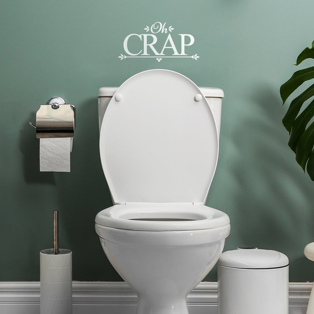 This awesome decal sign "Oh Crap"; is the perfect touch for your home or store. Use it for your bathroom; restroom or anywhere you want to bring some extra useful decoration. It's a vinyl sticker that is easy to put on any smooth and dry surface. Our modern designs don't just brighten up the room; but brighten up the day. Using top of the line vinyl across all of our production allows us to be the leaders in quality and design.