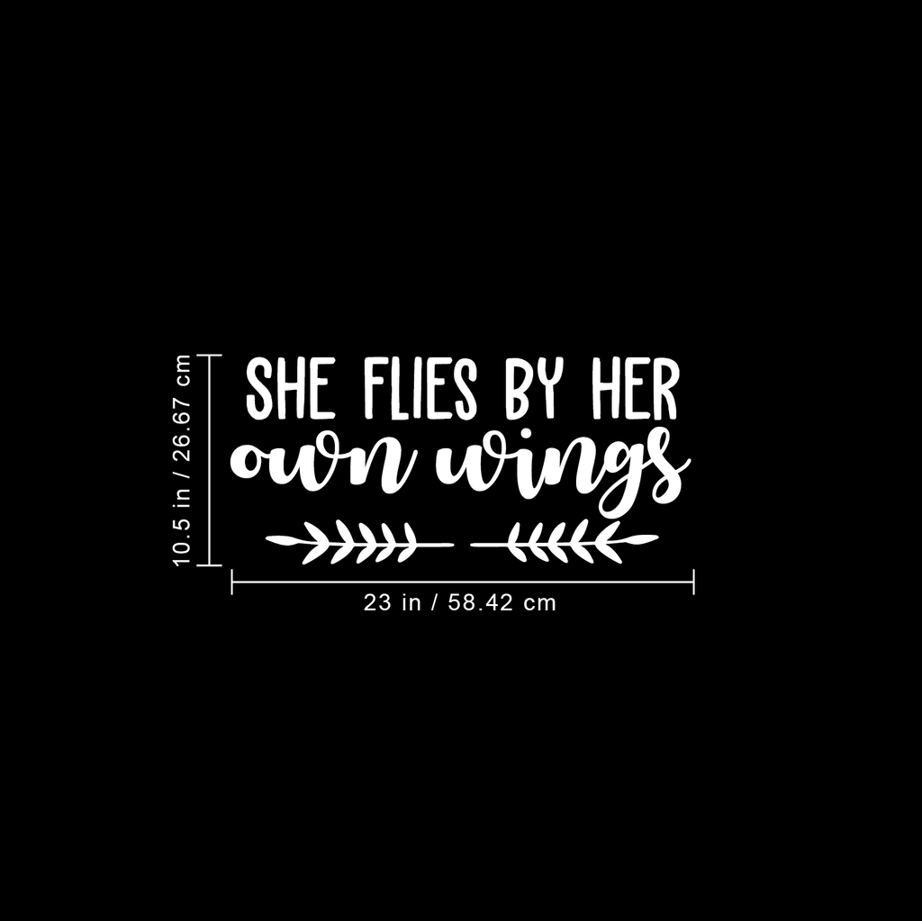 Vinyl Wall Art Decal - She Flies By Her Own Wings - 10.5" x 23" - Motivational Sticker Quote For Women Home Bedroom Living Room Girls Room Work Office Decor