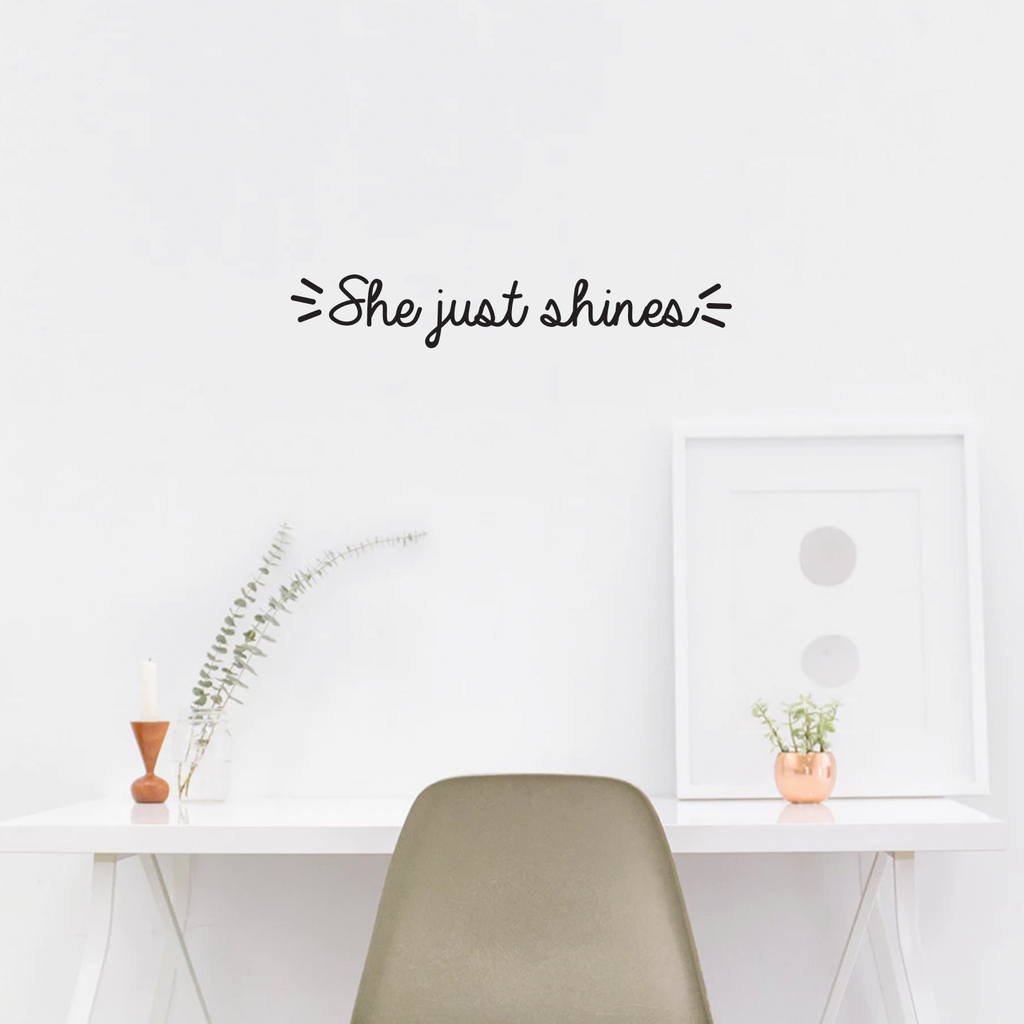 Vinyl Wall Art Decal - She Just Shines - 5" x 30" - Trendy Inspirational Cute Positive Girly Quote Sticker For Girls Room Bedroom Closet Playroom Living Room Office Yoga Ballet Feminine Decor