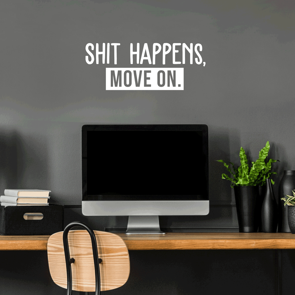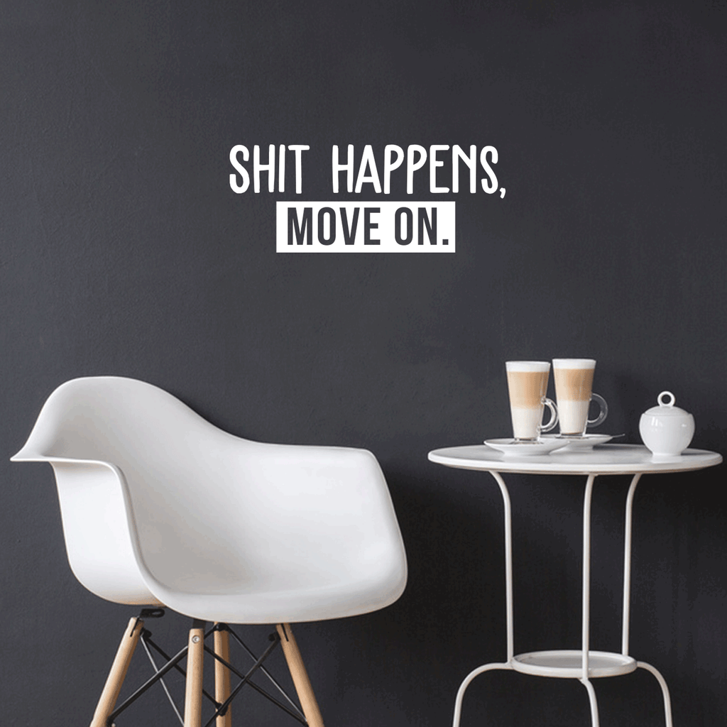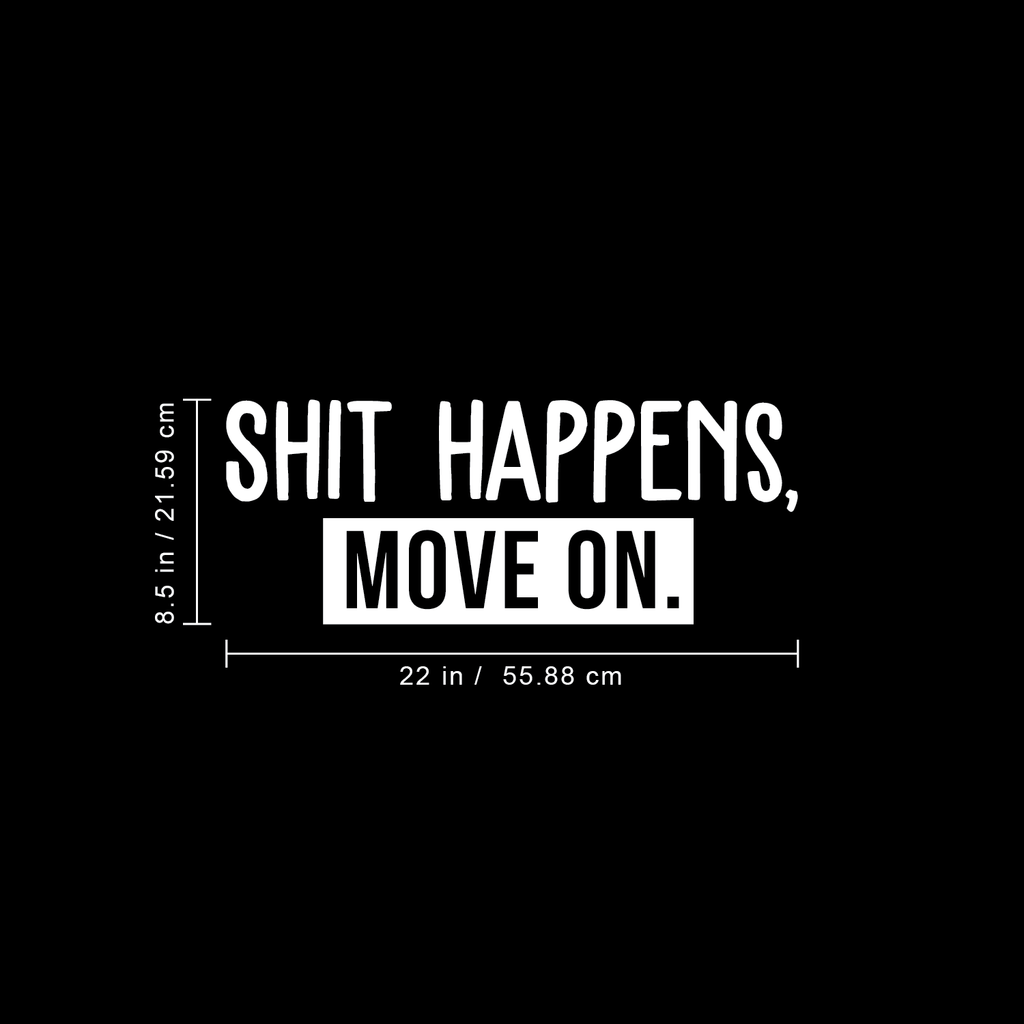 This awesome funny decal quote "Shit Happens Move On"; is the perfect touch for your home or store. Use it for your living room; bed room or anywhere you want to bring some extra positive decoration. It's a vinyl sticker that is easy to put on any smooth and dry surface. Our modern designs don't just brighten up the room; but brighten up the day. Using top of the line vinyl across all of our production allows us to be the leaders in quality and design.
