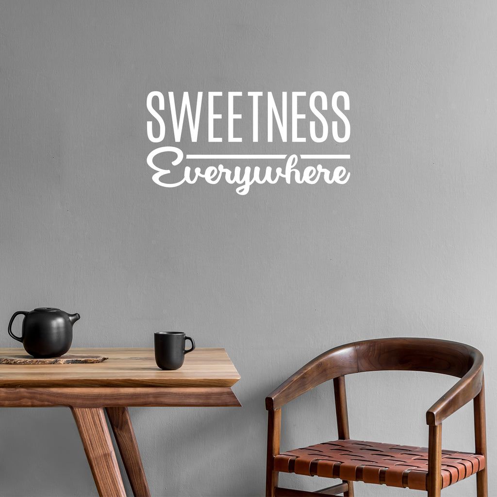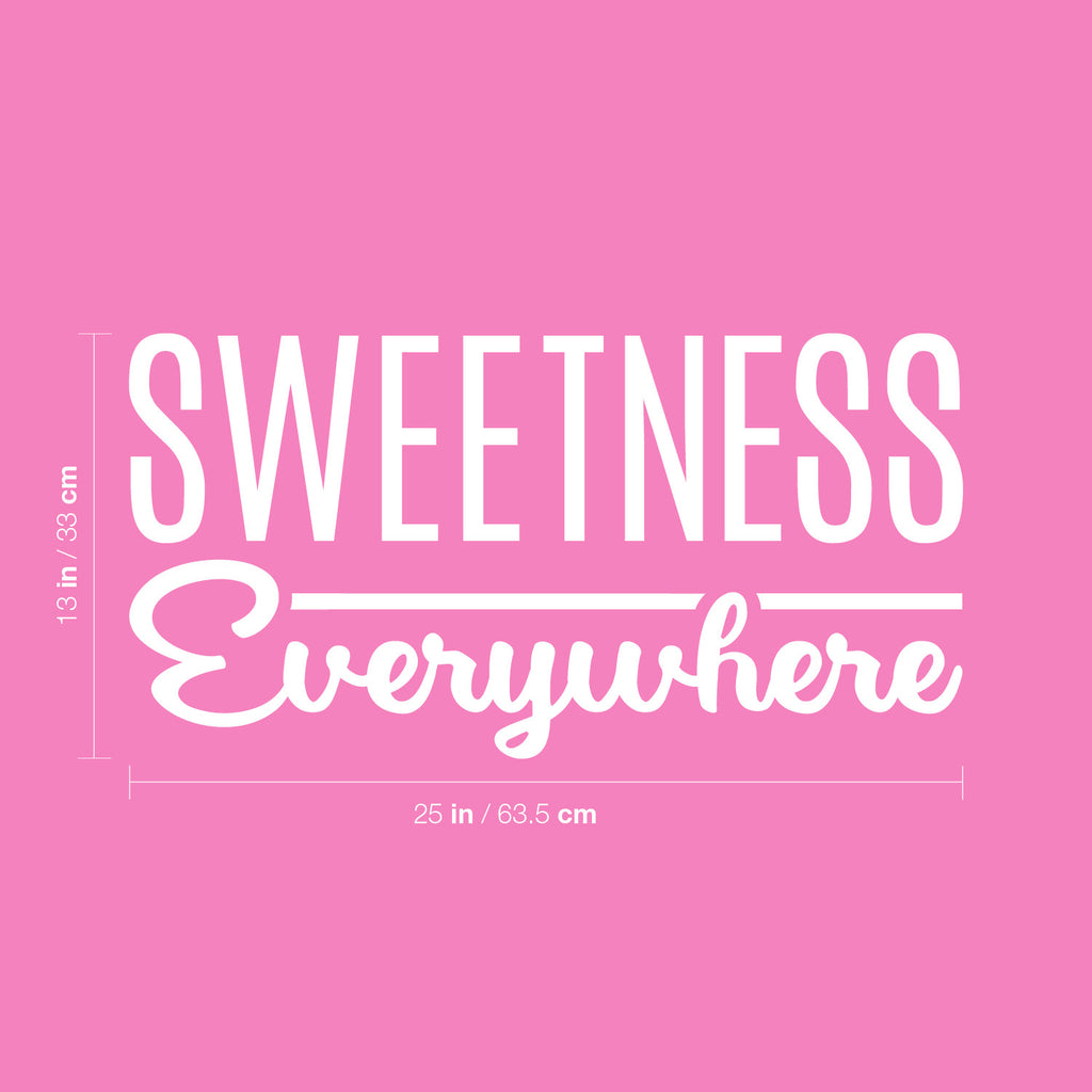 This awesome motivational decal quote "Sweetness Everywhere"; is the perfect touch for your home or school. Use it for your living room; playroom; kids room or anywhere you want to bring some extra cute decoration. It's a vinyl sticker that is easy to put on any smooth and dry surface. Our modern designs don't just brighten up the room; but brighten up the day. Using top of the line vinyl across all of our production allows us to be the leaders in quality and design.